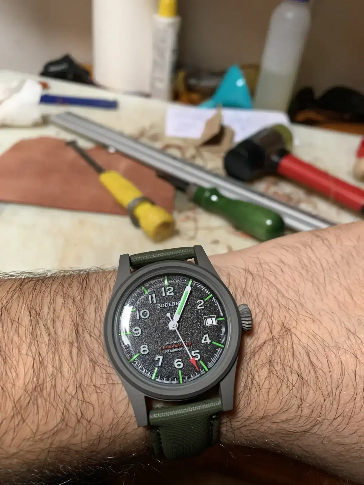 Así que sin nada mejor que hacer al “taller” a trabajar un poco en el cuero. Por ende no puede faltar el reloj daily, en esta ocasión recién llegado ayer de China, encantado con él.