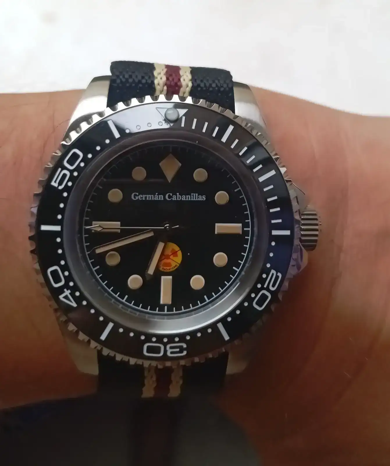 Y un Germán Cabanillas en "Times new Roman" debe ser edición limitada!! 😂😂👏🏼👏🏼Hoy llevo un franken chino con calibre Seiko nh35 y esfera Cabanillazeada de origen.