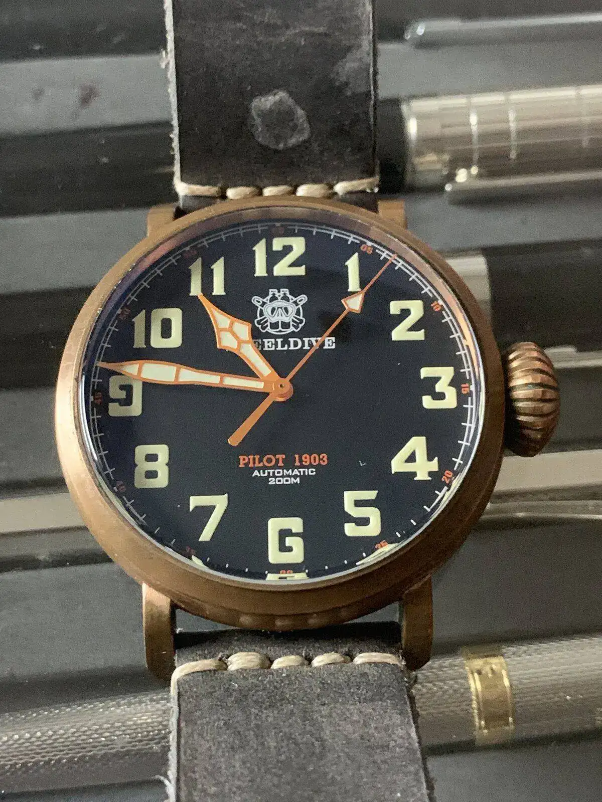 La verdad es q está cogiendo muy bien la patina y el dorado de las agujas e índices casa muy bien con el verde del dial.Queeeee chulada.