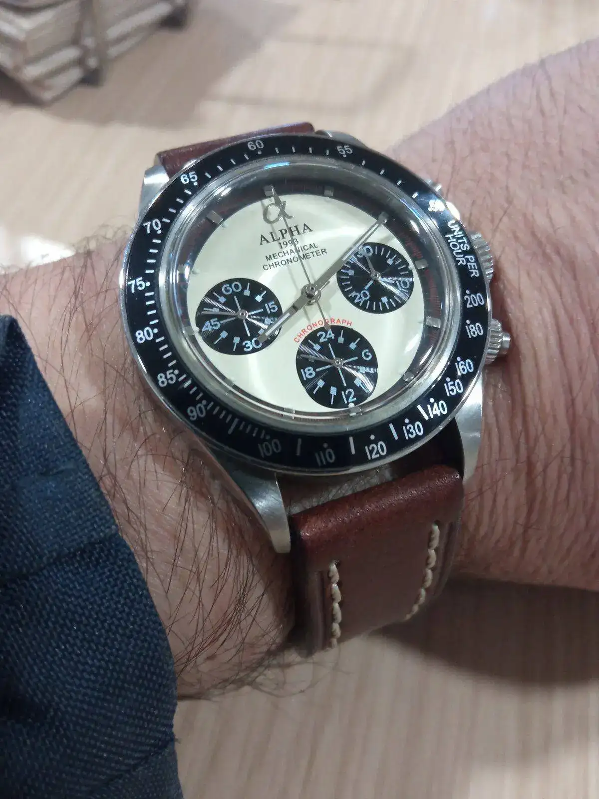 De momento, el dial me parece demasiado abigarrado - aunque, visto en la muñeca, menos de lo esperado - con tanto texto. Las agujas saldrán también, estas son demasiado parecidas a los índices y no me resultan muy legibles (cosas de la edá). Quiero ponerle un brazalete tipo President, cambiarle la corona por una moleteada, y ya veremos qué judiadas más se me ocurren. De momento, tengo que buscar un insert un poco menos soso que este. El del Yellow Fin me encanta, pero no lo encuentro en esta medida.