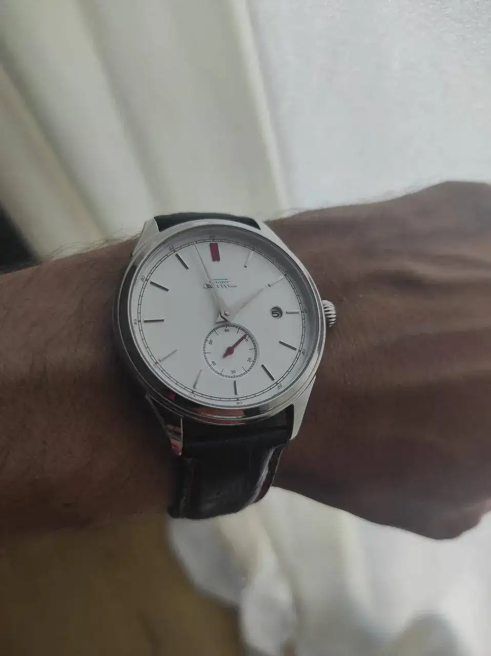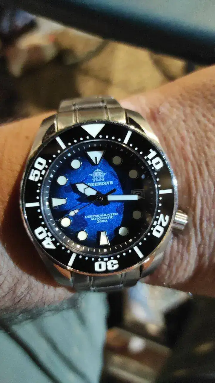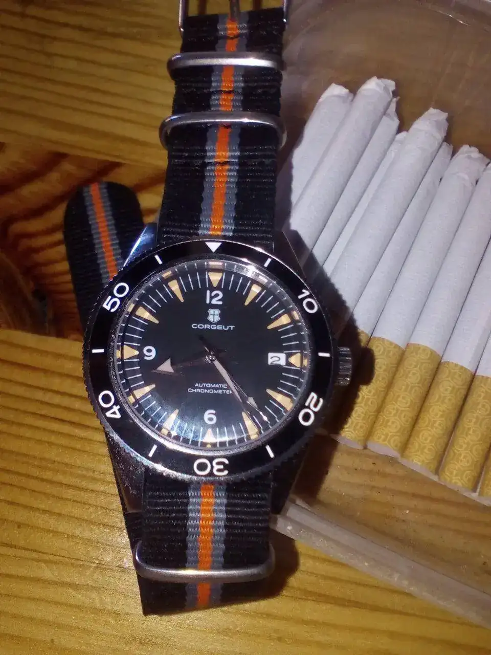 - es el maldito brazalete, que viene con un cierre de "mariposa" y que cuesta varios juramentos quitar. Con esa correílla va mucho mejor y más cómodo. Lo que se ve detrás no lo tengáis en cuenta, que es vicio puro, así como otra cosa que hay al lado y que no sale en la foto. Por cierto... pedido el día 26 de julio y llegado hoy. En realidad ayer, pero no estaba en casa y lo volvieron a traer hoy. Y todo por 64,09 púas.Se nota que tiene sus historias encima ese reloj. Está interesante.