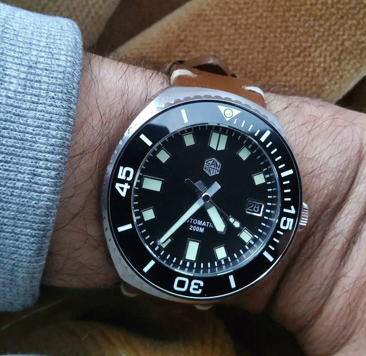 Hoy llevo éste (aunque la foto es de archivo). Reloj personalizado (para que el Sr. Cabanillas no se sienta solo 😜). Parnis, del tito gong, sin zafiro y un mecanismo(creo) chino, no sé cuál, pero ya lleva unos 8/9 años conmigo y funciona de maravilla (aunque es verdad que no lo uso muy a menudo).