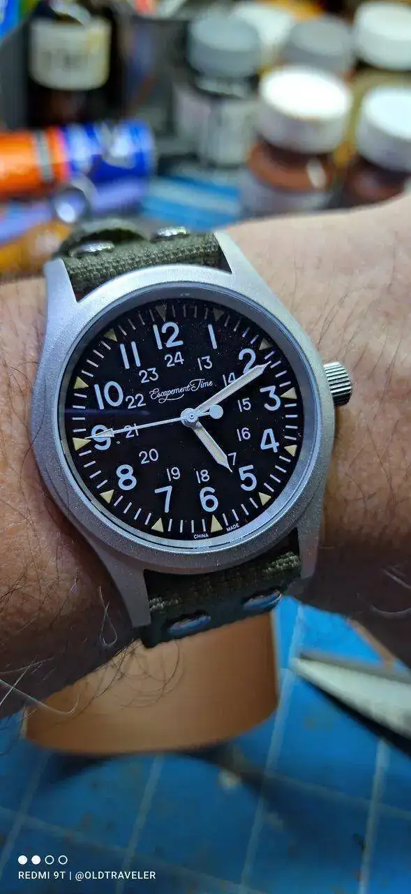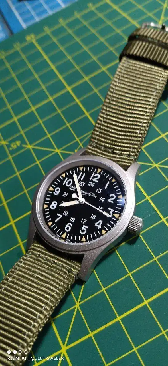 Muy guapo, e idéntico al Hamilton.Recien desempacado, y he comprobado que todo lo bueno que se dice de él es cierto, y en mi caso sustituye a mi "cuarzo batallero", que mi hijo me birló recien llegado.