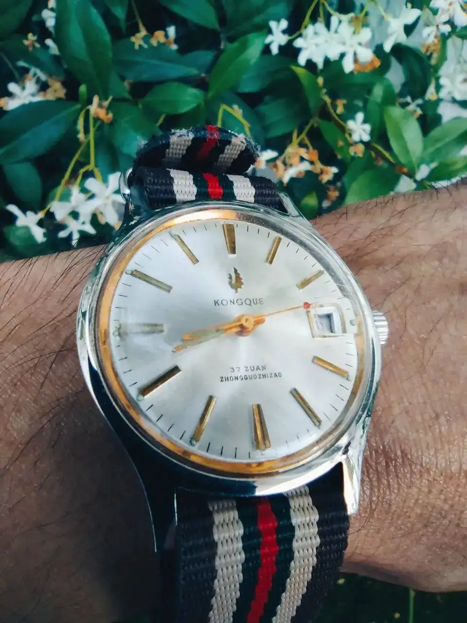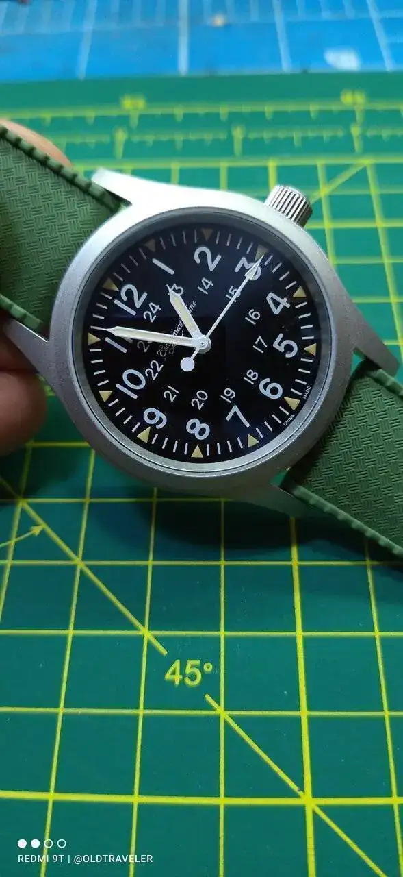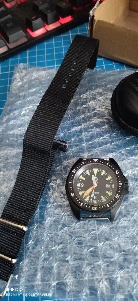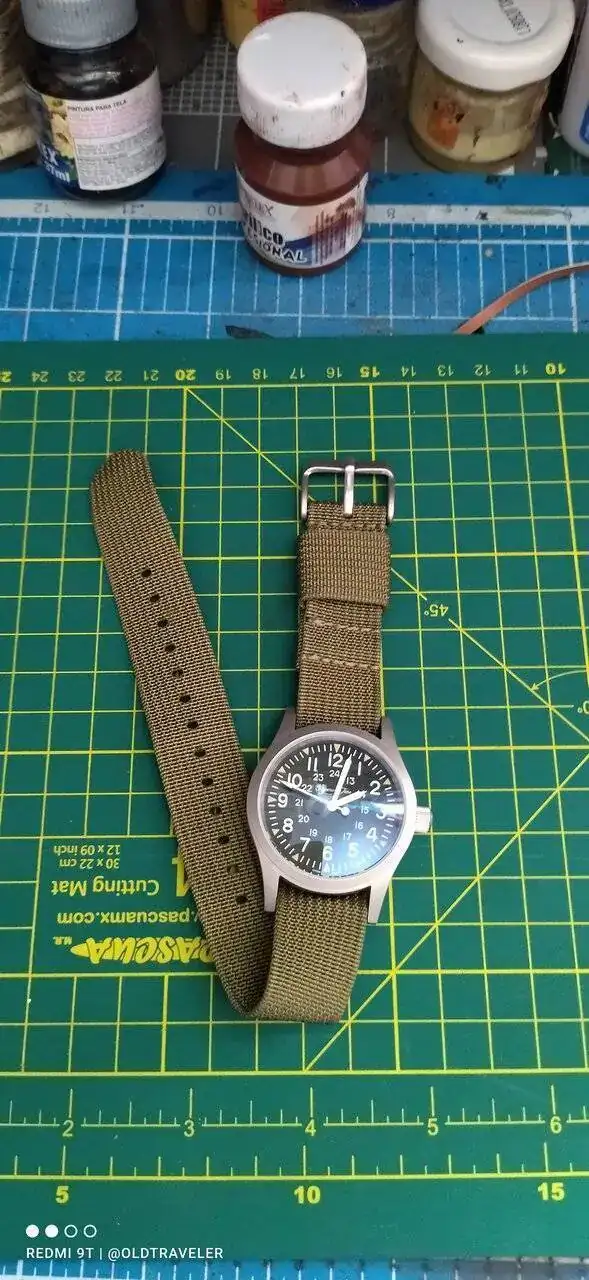 ahora lo traigo con una correa de nylon de dos piezas, pero las natos de un solo paso le quedan estupendamente bien, si buscas un cuarzo batallero por menos de USD 50 , este es una buena opcion.