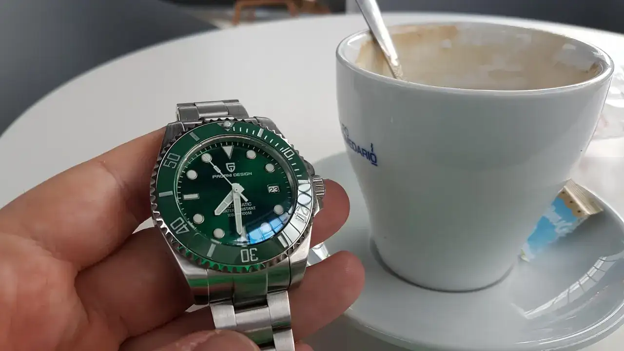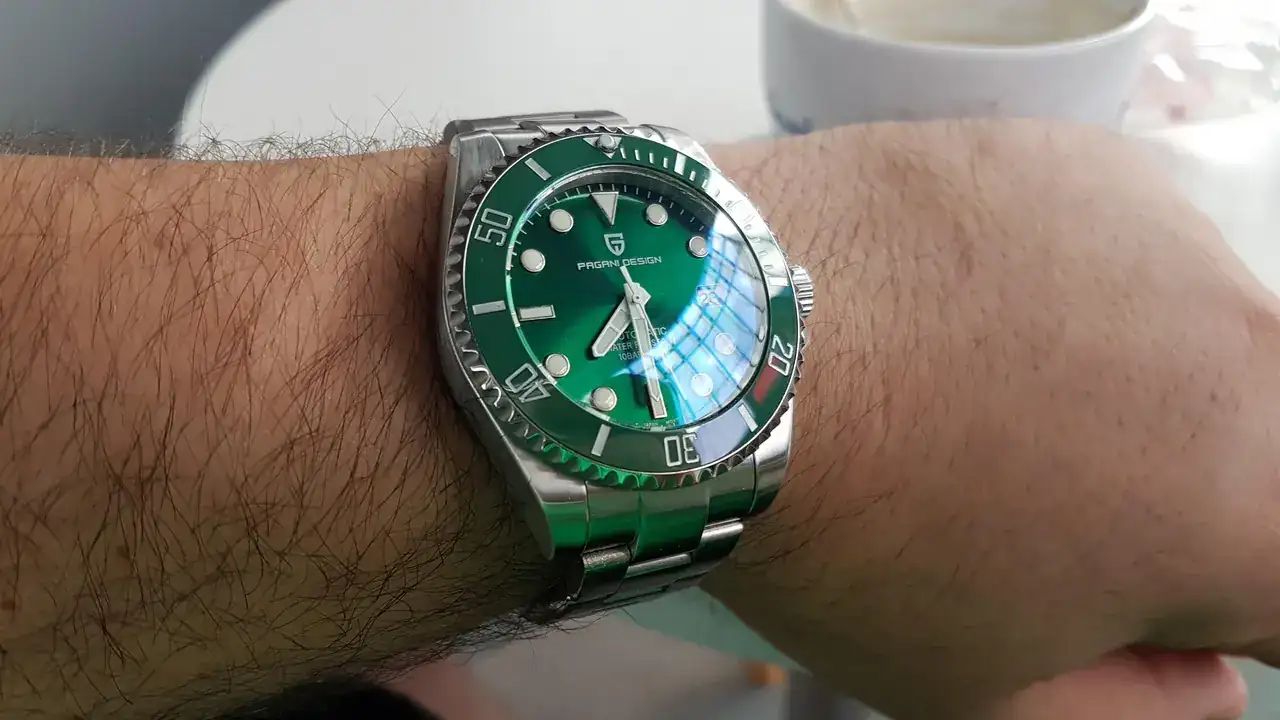 Sí, es un "homenaje" del hulk. En persona es muy bonito el verde pero lo tienes en más colores. Monta un nh35 que va muy bien, en este caso le cambié las agujas y el cristal porque no me gustan las agujas mercedes ni la lupa.Buenas. Es un homenaje al famoso Rolex Hulk, no?