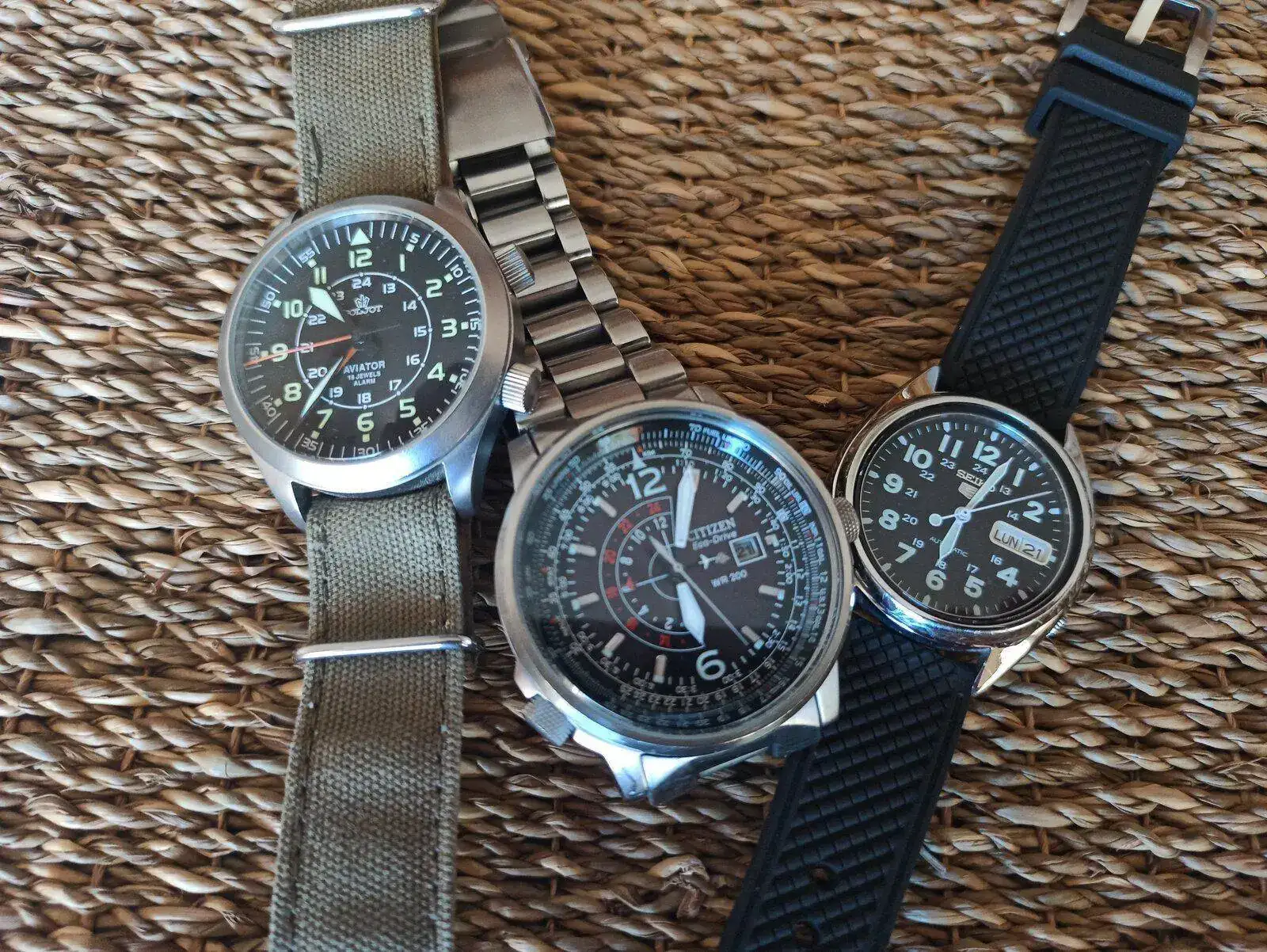 Enhorabuena, magnífica colección.Siempre intento que el reloj nuevo que entra aporte algo diferente a lo que ya tengo, ya sea el color, una escala, un tipo de reloj..... Tanto es así que sin buscarlo, en mi colección ningún reloj tiene el mismo movimiento, lo cual tiene su encanto.