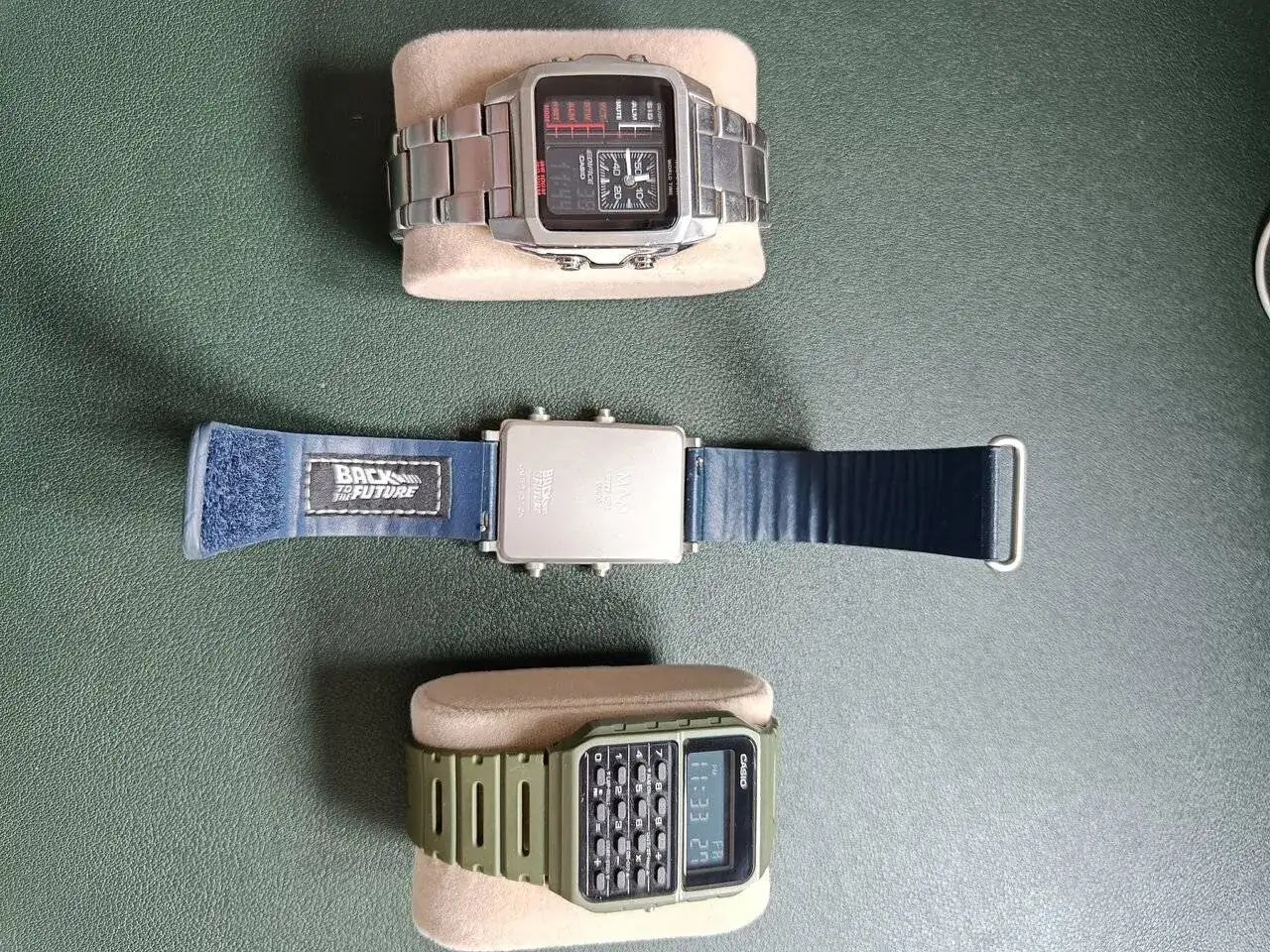 Mi película favorita es regreso al futuro, tuve la suerte de verla de estreno en el cine y me dejó marcado. Por eso tengo 3 relojes relacionados con esta película: unos Casio calculadora como el de Marty, otro Casio edifice muy futurista, para ser de los 90 y una edición especial que me regaló mi mujer hecho con el aluminio del Delorean, que se vende en los estudios Universal.