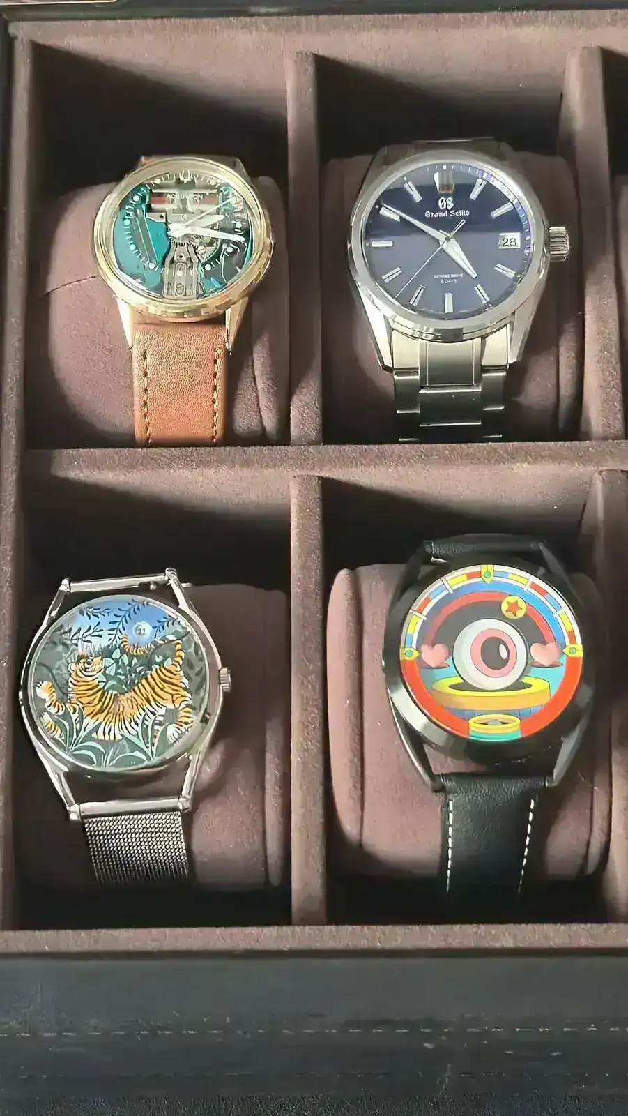 Tras algún tiempo siguiendo el foro, y agradecido a las contribuciones de los compañeros, me animo a compartiros mi colección, que creo que os puede divertir. Digo esto porque hay un pequeño tema común, son relojes "ponibles" pero con un punto transgresor o innovador que puede ser más o menos sutil. La cosa va de alguna forma en llevar la contraria al tiempo, al menos a algunas convenciones en lo básico de dar la hora. Encuentro algo poético en ello. Creo que a este mundo hemos venido a reírnos, así que no deberíamos tomar el tiempo demasiado en serio ni tampoco verlo de forma rutinaria.