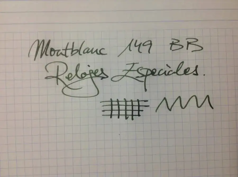 Sí, ya lo sé, muy original. Es una MB 149 moderna con plumín BB que le compré a Max Schrage, quien por cierto me ha dicho que es forero ¿¿?? y que lee el foro de vez en cuando para practicar español. Llevo años siendo reacio a las MB tras una mala experiencia pero tanto comentario favorable por gente con buen criterio me han animado. Y ciertamente, MB es de las casas actuales que pueden proporcionar de serie un plumín interesante.