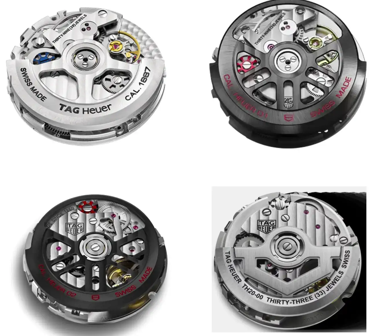 En 2015, durante la feria de Basilea, Tag Heuer presenta su nuevo calibre Heuer 01. Lo de nuevo es una forma de hablar porque se trata del mismo calibre 1887 con unas simples modificaciones estéticas, como una rueda de pilares roja en lugar de azul, un puente de cronómetro "esqueletizado" y poco más.
