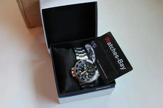 Otro aspecto que no me convence es la caja, no sé si será la original del modelo, igual alguien por aquí lo puede confirmar, pero me pareció bastante simple a pesar de ser un reloj de la gama básica de Seiko.