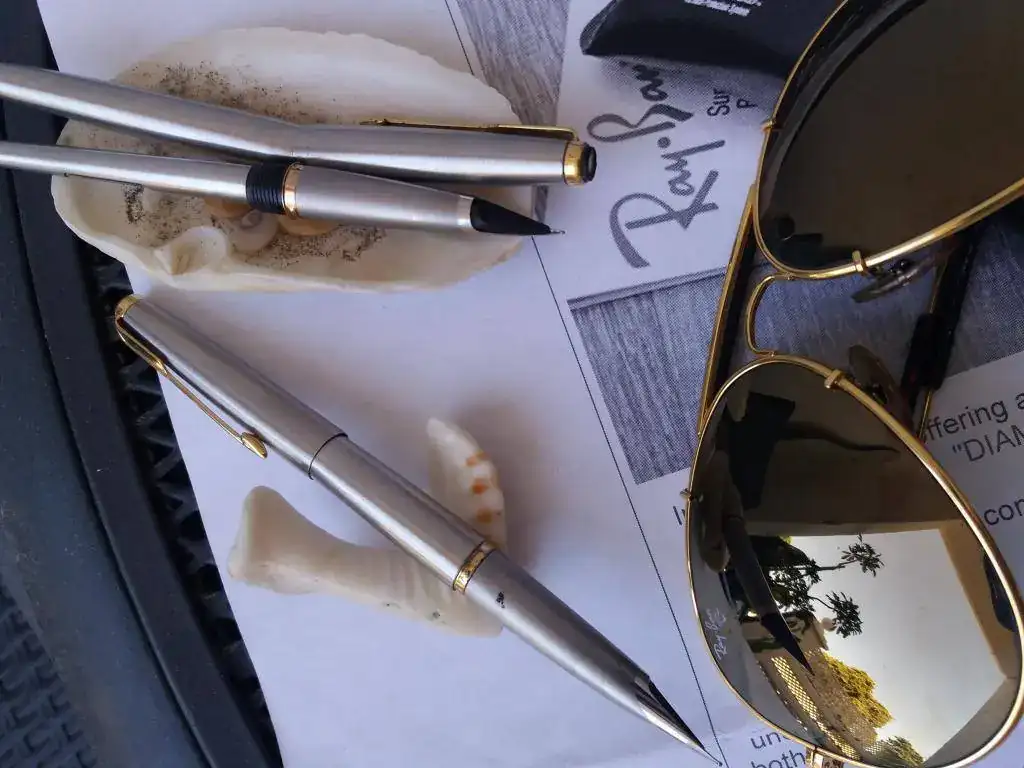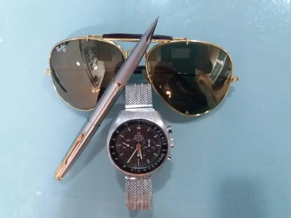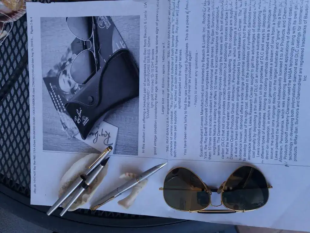 De todos los viajes de mi padre un GRAN Lobo de Mar,trajo algunas cosillas dos de las cuales sabeis ustedes mas que yo ,y la tercera unas Ray-Ban DLC,recubrimiento el mismo que llevaban los cascos de los astronautas,comprando RB el excedente y tratando con el los cristale de estas gafas.