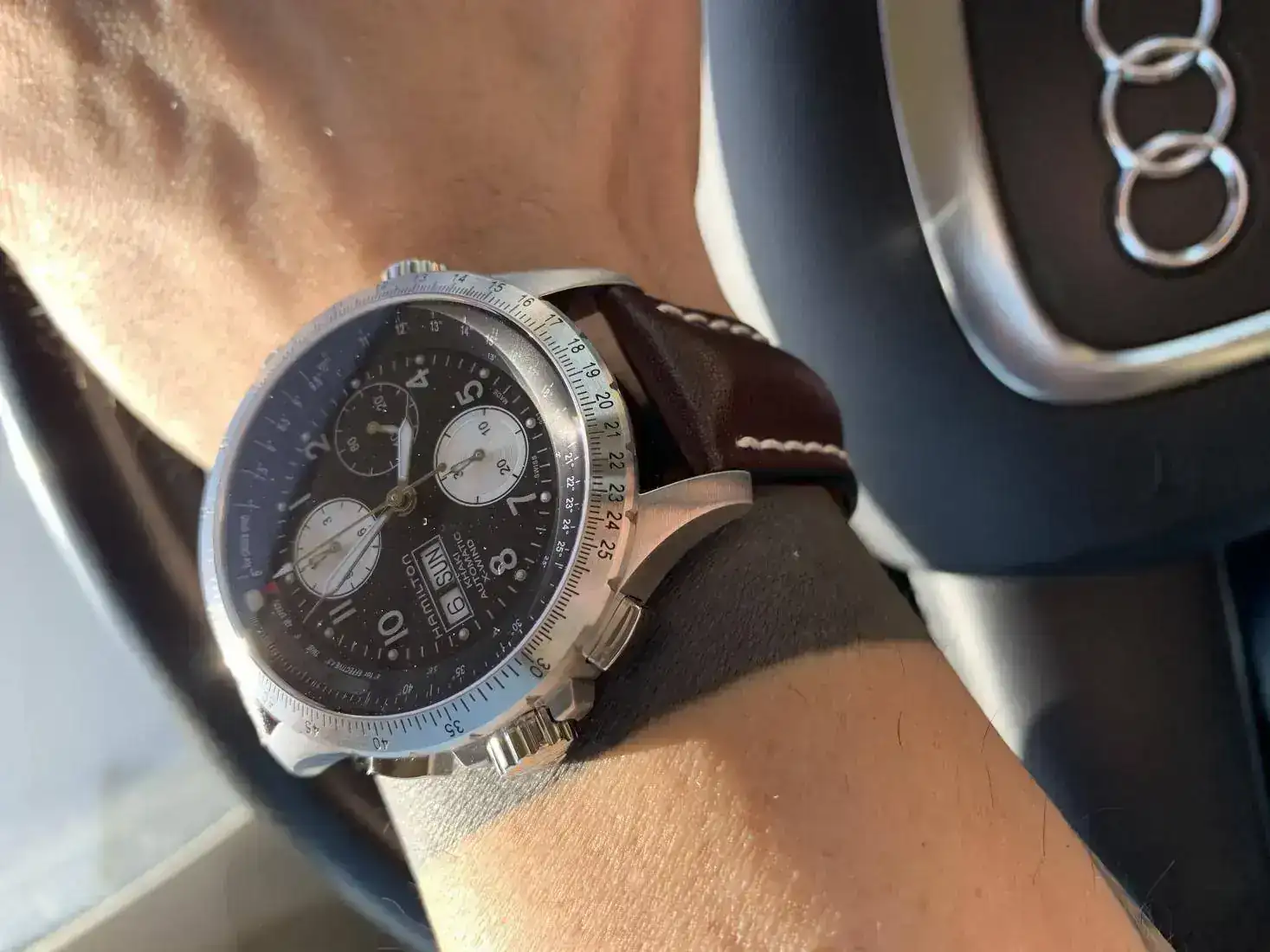 Después de soltar la parrafada contando un poco los sentimientos, que hay detrás este reloj, se trata del modelo X-Wind auto crono de Hamilton. Una marca la cual siempre he oído hablar muy bien y tras investigar este foro más.