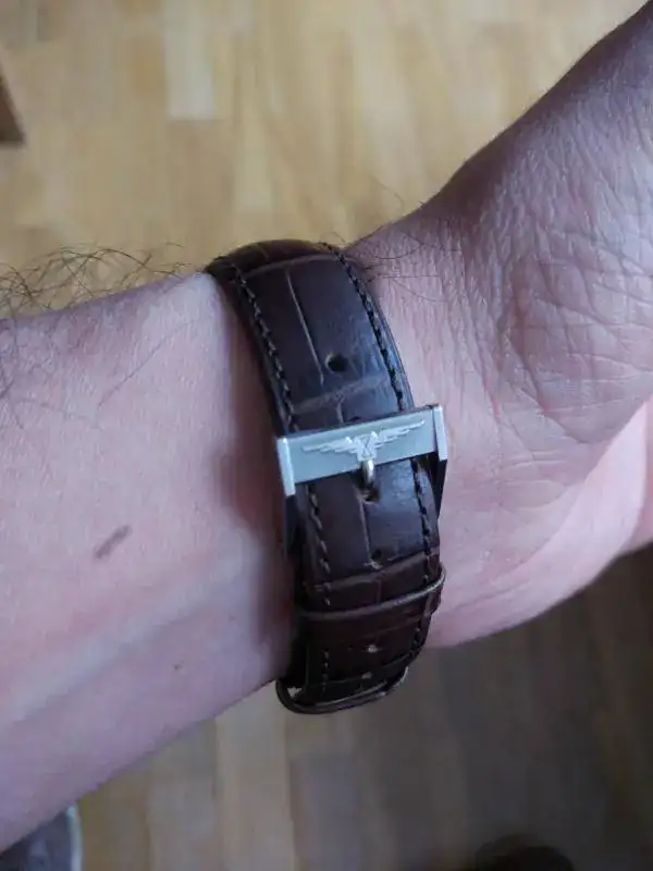Por lo demás, se le limpió la caja con ultrasonido (nada de pulidos), y escogí una Hirsch de cocodrilo marrón, con el detalle de la hebilla chapada con el logo de Longines que le pedí a Pedro y que me consiguió sin problemas.
