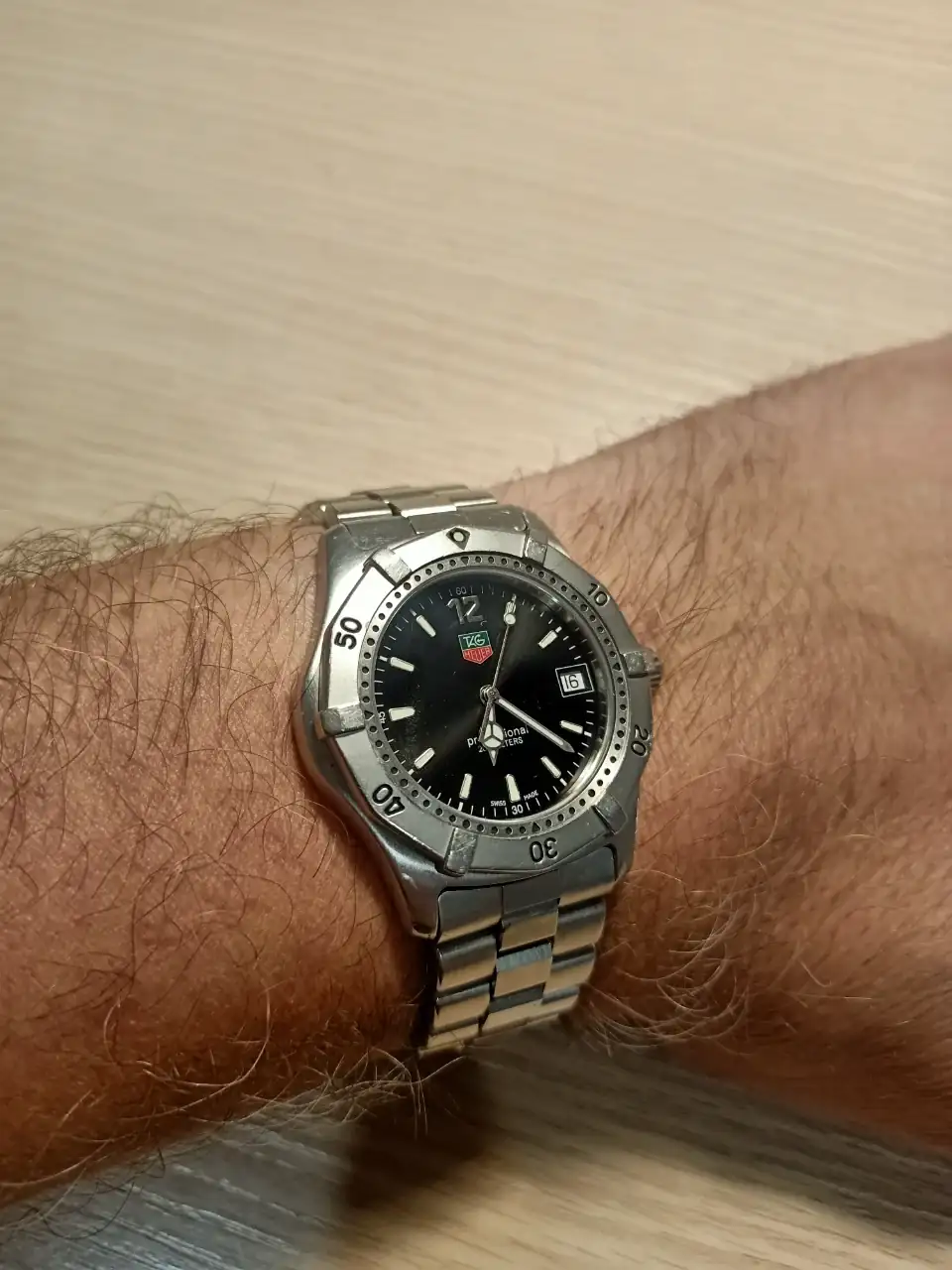 Tag Heuer 2000 que me compré nuevo en 2000 o 2001... Justamente hoy lo he recogido del relojero, llevaba 10 o más años sin usarse, se ha podido resucitar. 290 euros de revisión... Pero tiene gran valor sentimental.