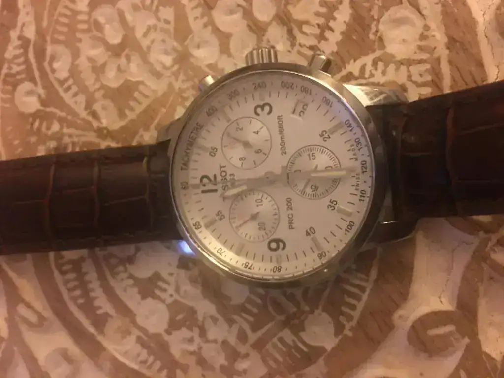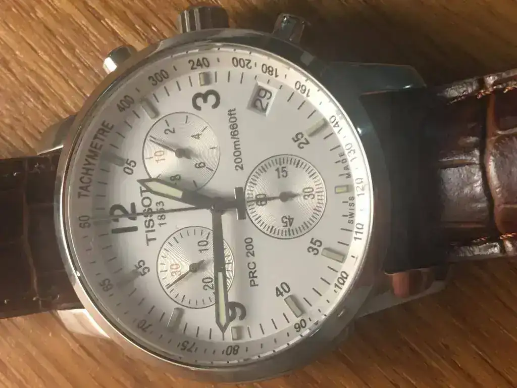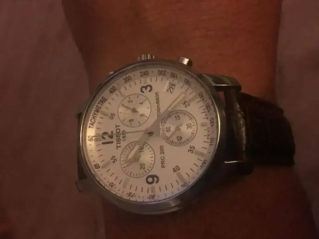 Hola a todos. Me ha llegado ya a casa mi última adquisición realizada durante este agosto mientras estaba de vacaciones. Se trata de un Tissot PRC200 al que no le falta presentación por tratarse de una pieza muy conocida y creo que respetada. Esfera de 39m que yo hubiera preferido un poco más grande, cristal de zafiro, cronógrafo, 200 m WR y una correa de piel bastante cómoda y con calidad. Os pongo unas fotos y pasa a engrosar la caja de las piezas interesantes. Un saludo a todos.