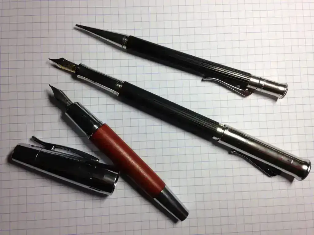 Viendo las dos se puede decir que la GVFC, con plumín F, es muy flexible y casi se podría dar por una M de la E.motion.