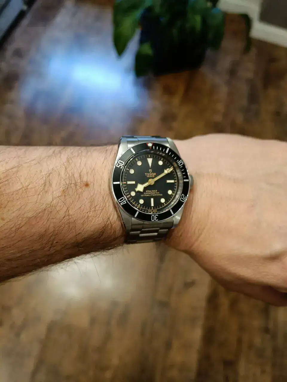 . Queria tener ya un reloj de empaque en mi coleccion, y coincidiendo con ciertos acontecimientos familiares como recuerdo de mis padres ya fallecidos, para ello estaba interesado en un principio en el ORIS AQUIS calibre 400. Pero siguiendo recomendaciones de aqui, me fui a ver el Tudor y me encanto, En foto no dice mucho, pero puesto es una pasada. Me estuve probando el BB58 pero pese a que aqui se hablan maravillas de el, cogi el de 41 que era el que mas me gustaba, el de 39 me lo veia chico jejeje. Si, es cierto que es alto pero yo me siento comodo con el una vez bien ajustado el armis.