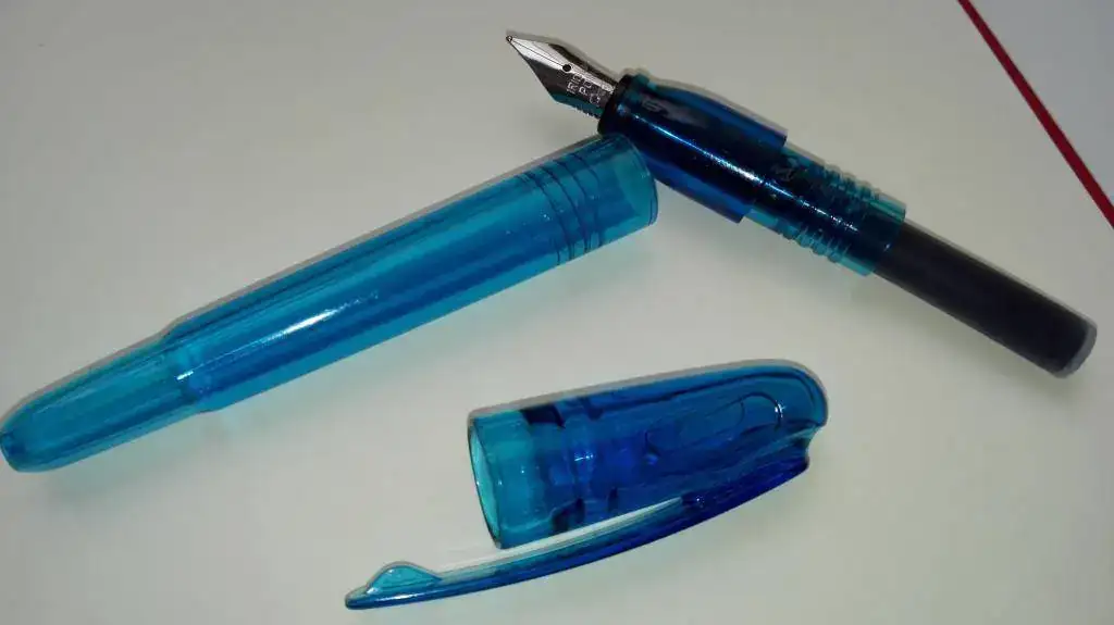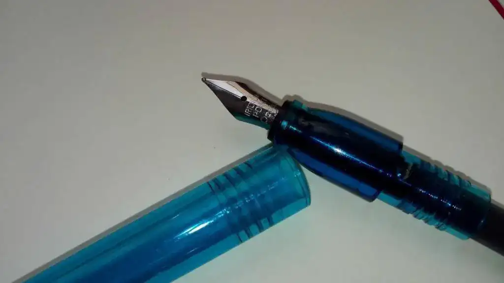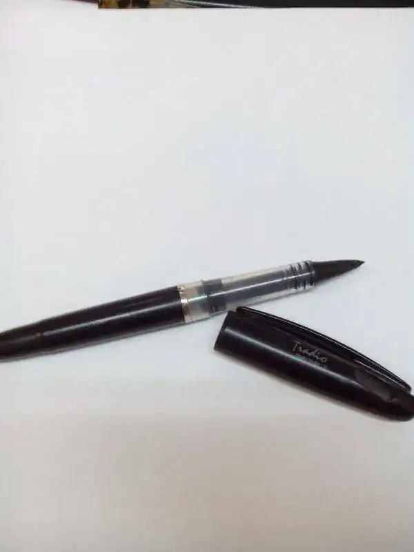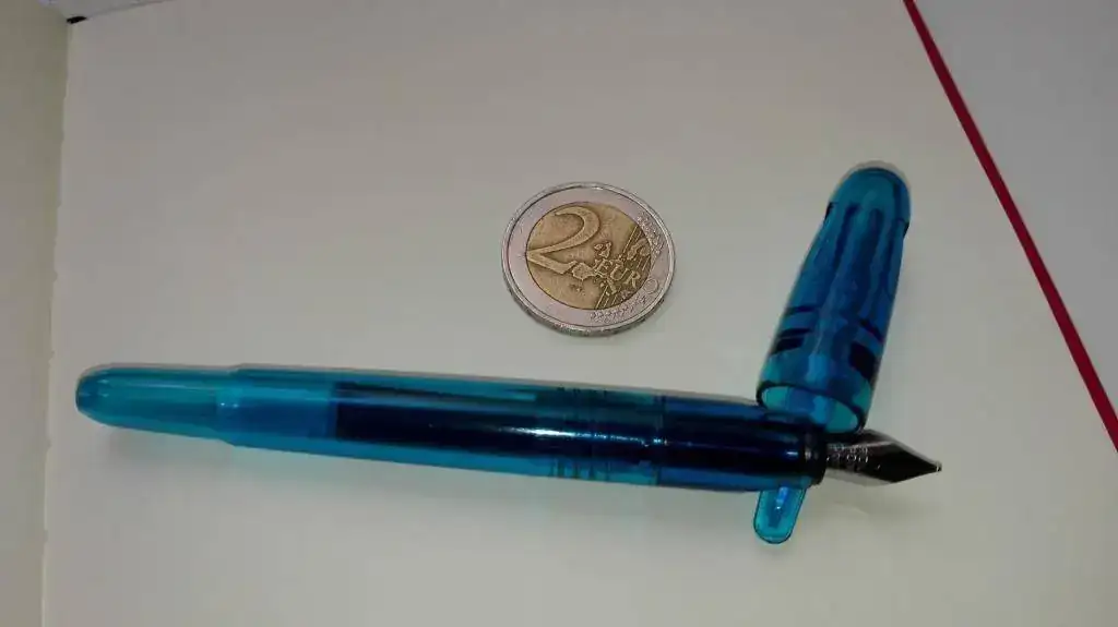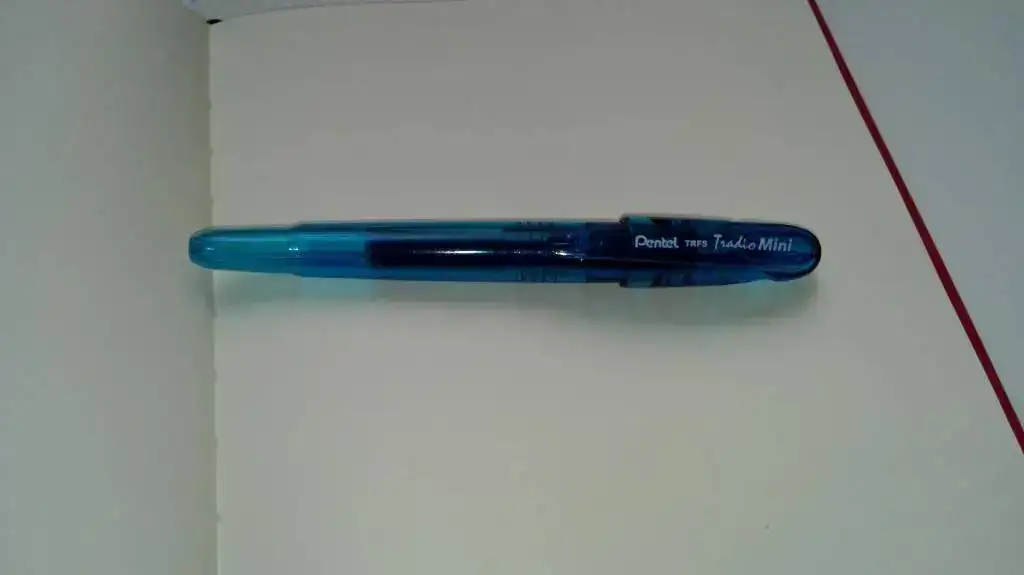 Os presento mi nueva (y modesta) adquisición: una Pentel Tradio Mini. Se la vi a un amigo en el trabajo y me gustó un montón por su sencillez, precio (menos de 5 euros en una papelería de esas de franquicia) y porque escribe súper suave y fluida. Usa cartuchos universales, pero mi plan es convertirla en una eyedropper aprovechando que es de plástico traslúcido. Las comparaciones son odiosas, pero a mí me da mucha mejor sensación que las pilot v-pen.