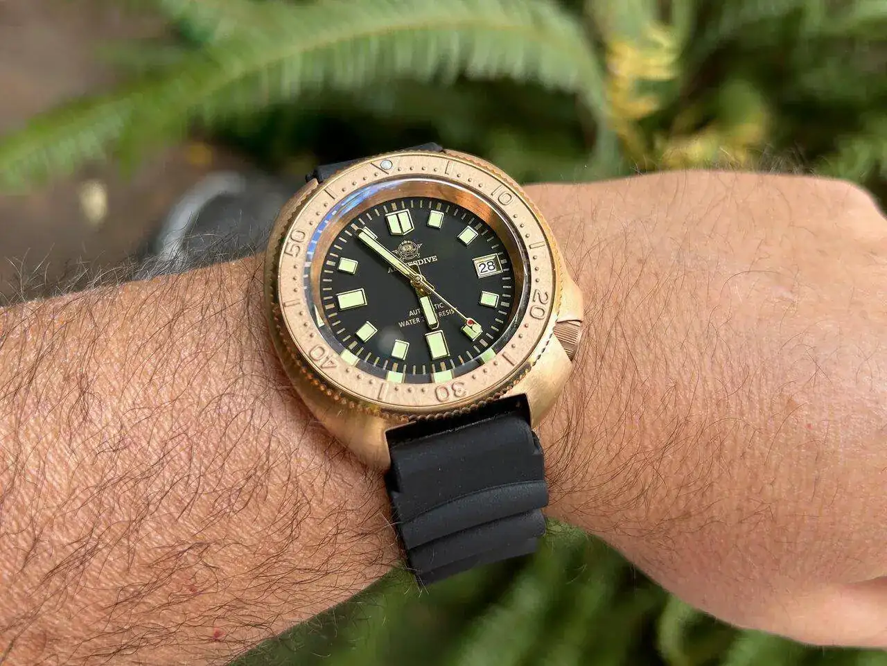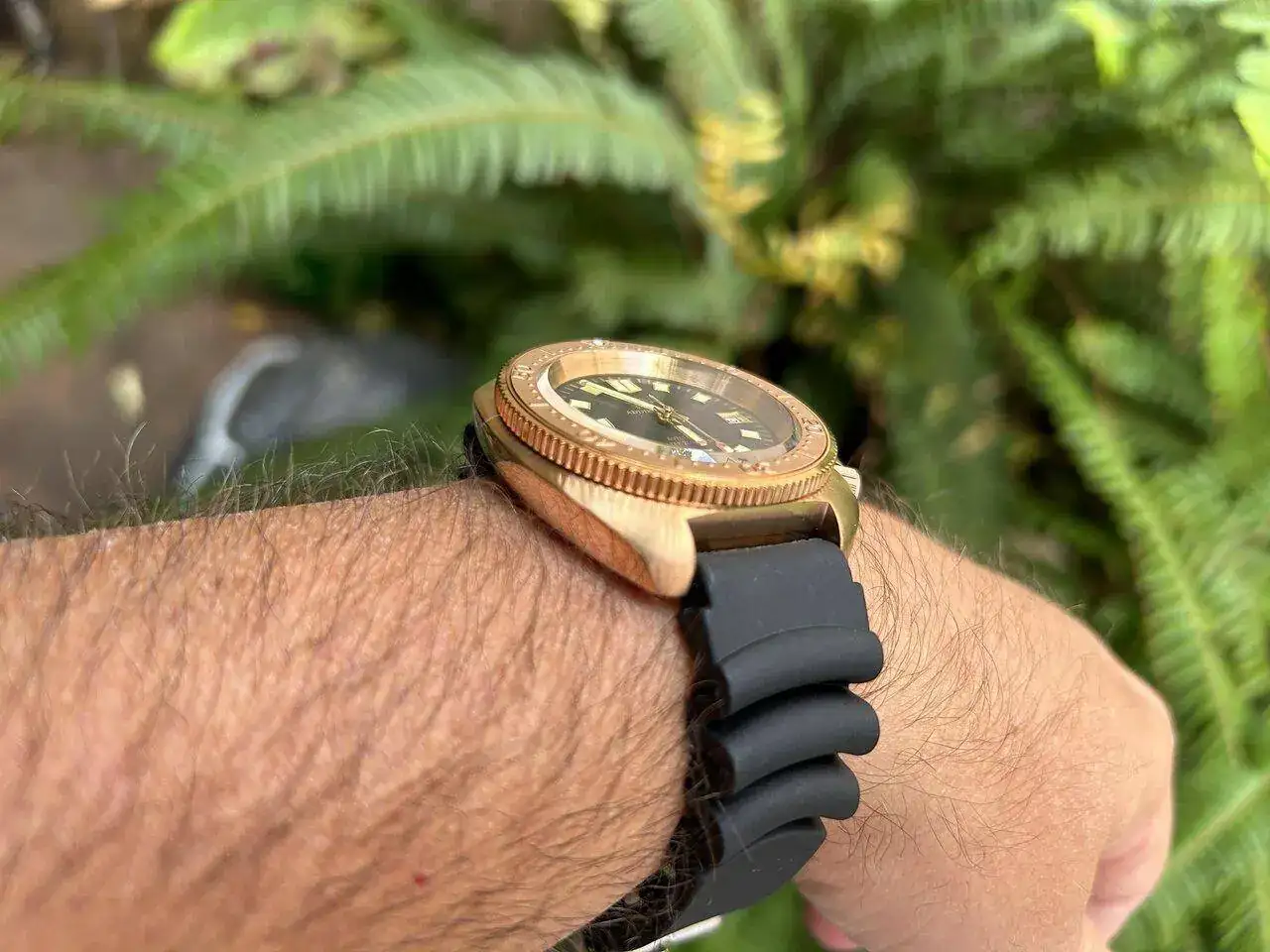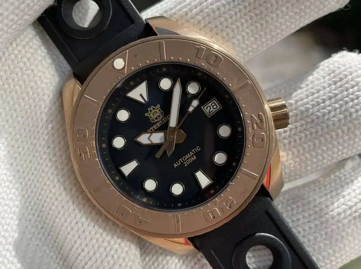 Os presento mi nuevo y recién llegado reloj, aprovechando las ofertas no pude resistirme y tengo un reloj que aunque es hermano de los otros dos , es totalmente diferente, al ser la caja en bronce. Tiene muy buena lectura al ser la esfera negra como buen Diver. Me encanta el detalle de las agujas también en dorado y los índices.