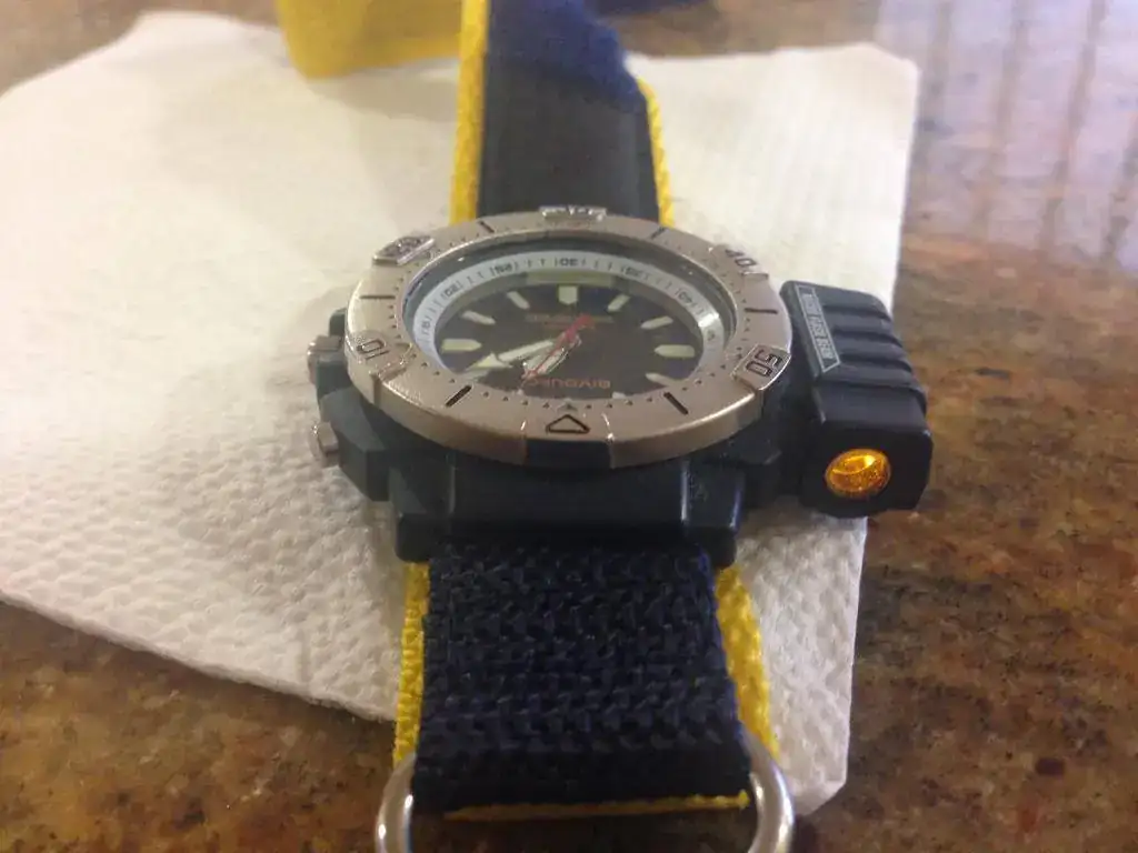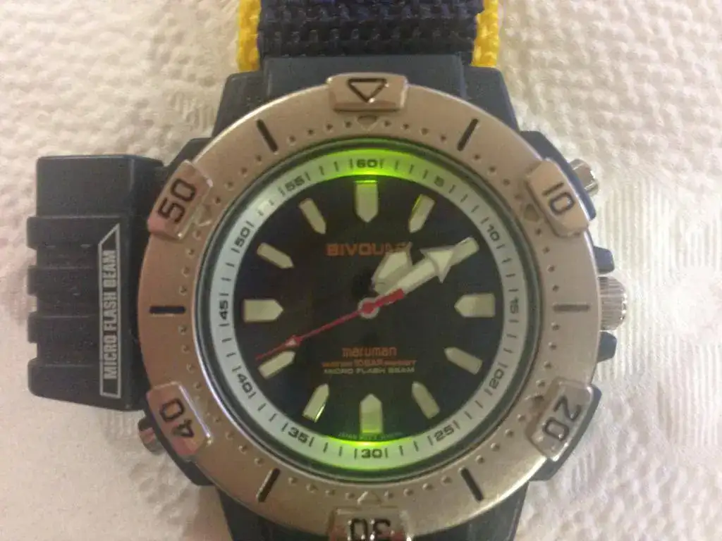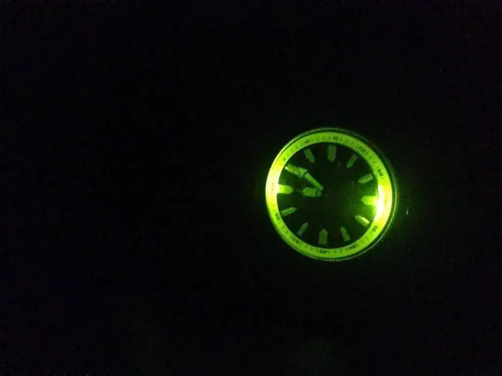 lleva una pequeña linterna que funciona perfectamente y una luz para iluminar el dial que tambien marcha.poco mas que decir de este cuarzo.