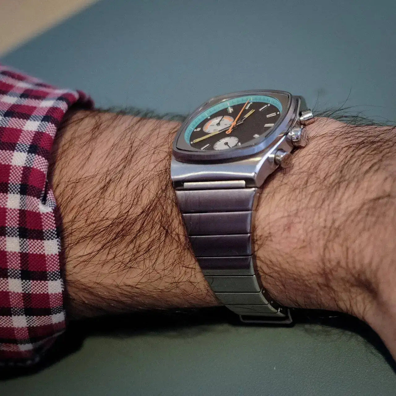 - Me gustaría que no fuera cuarzo; pero siendo un meca-cuarzo, el tacto de los botones y el crono dan el pego, además es más delgado gracias a ello y el precio es el que es.