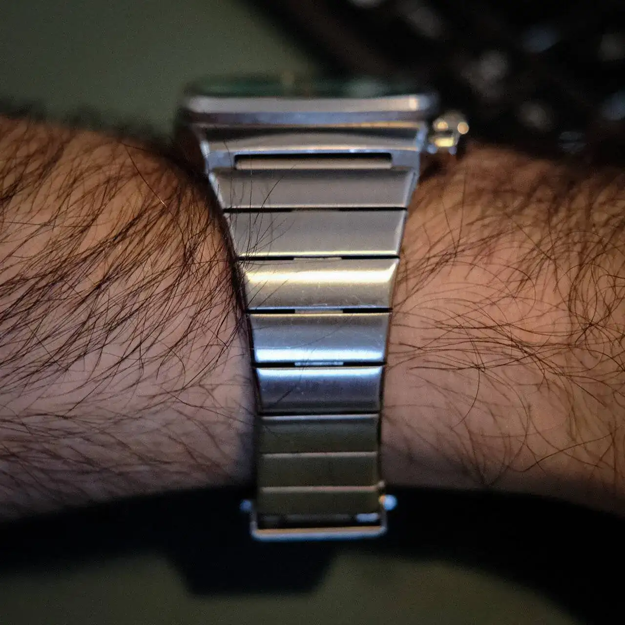 Hace unos días me levanté a dar el bibe a mi hija y ví la alarma de un resultado nuevo. Sin mirar mucho ni pensar (a esas horas no soy persona): el precio era bajo y parecía en buen estado a parte de las rascadas normales en el cierre del brazalete. Le hice una oferta un poco bruta al vendedor, sin esperar que la aceptara y a la mañana, al levantarme, la había aceptado. Lo compré y aquí está.