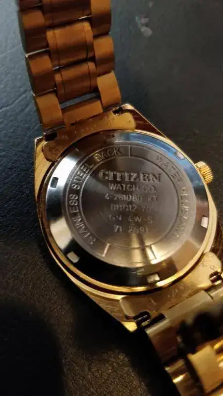 No tengo ni la más remota idea del año del reloj (> 1974 ¿?). Os agradecería, como siempre, vuestras valiosas contribuciones y si me pudieseis enseñar a descifrar las referencias (creo que la primera es el modelo de caja).