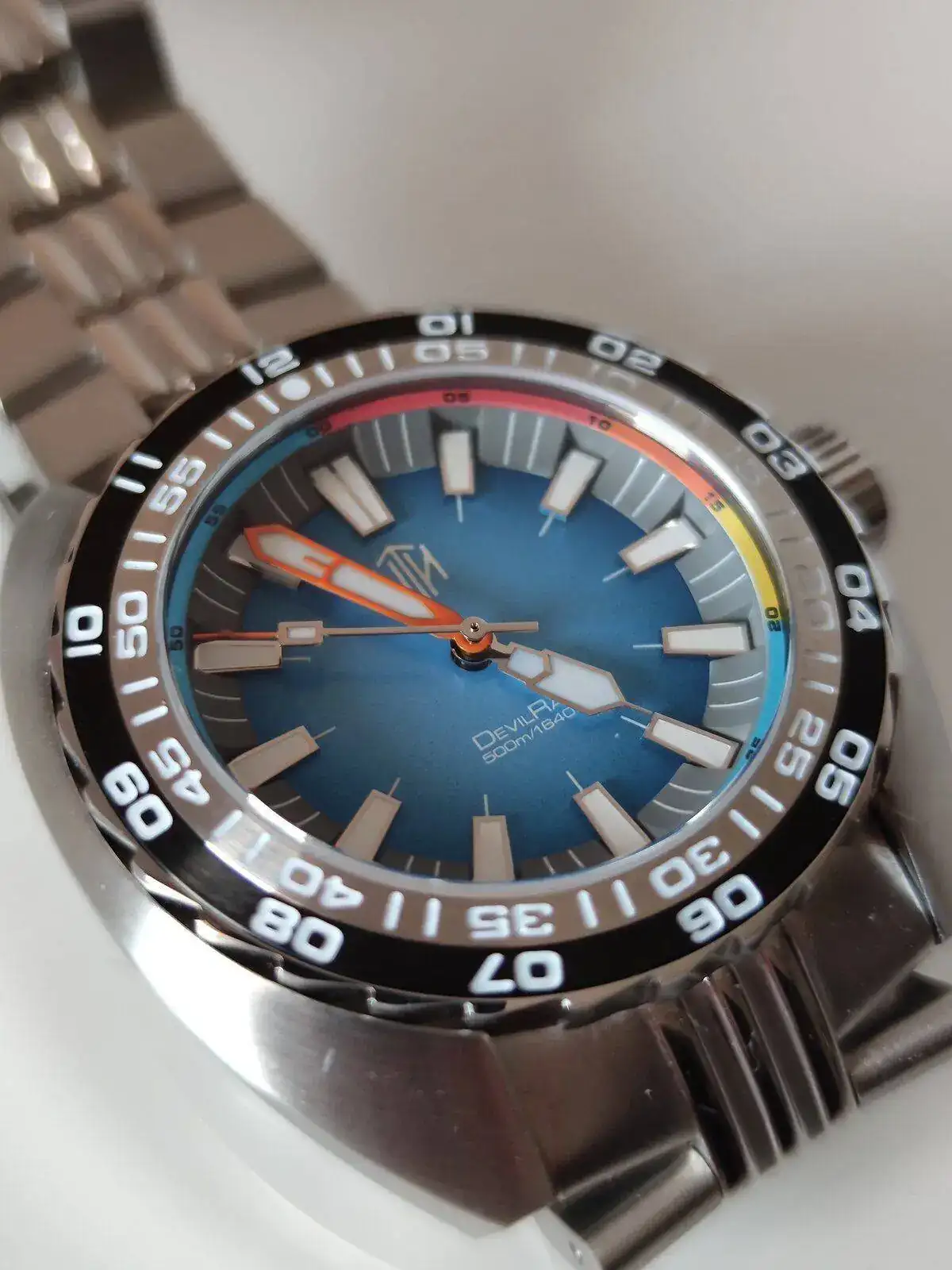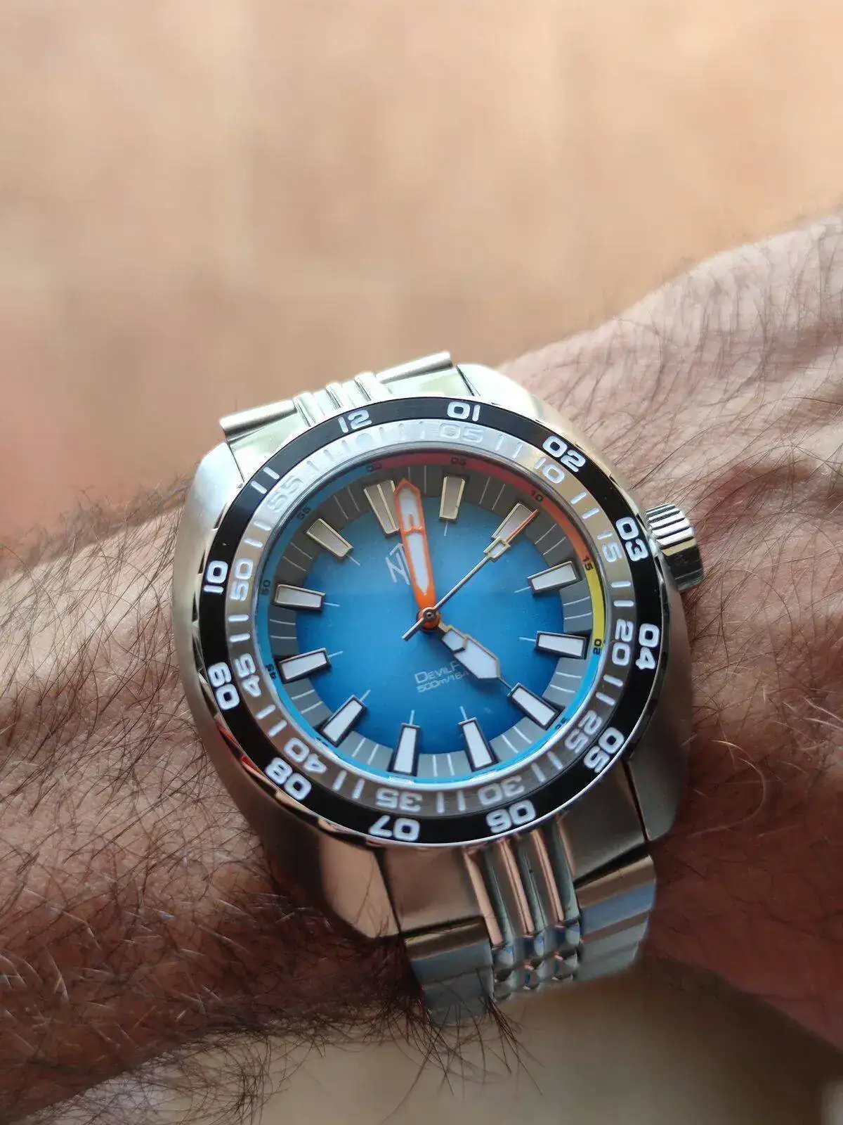 Os presento un diver que me acaba de llegar y que me ha llamado bastante la atención por su calidad,se del modelo Devil Ray de la marca estadounidense NTH,la cual llevo un tiempo que me llamaba mucho la atención sus relojes pero nunca había tenido ninguno.Se trata de un diver 500 MTS con una historia muy peculiar ya que su dueño trató de hacerlo inspirándose en varios divers muy conocidos,la caja es muy similar al Doxa con un tamaño de 46x43 mm y 14,5 de alto
