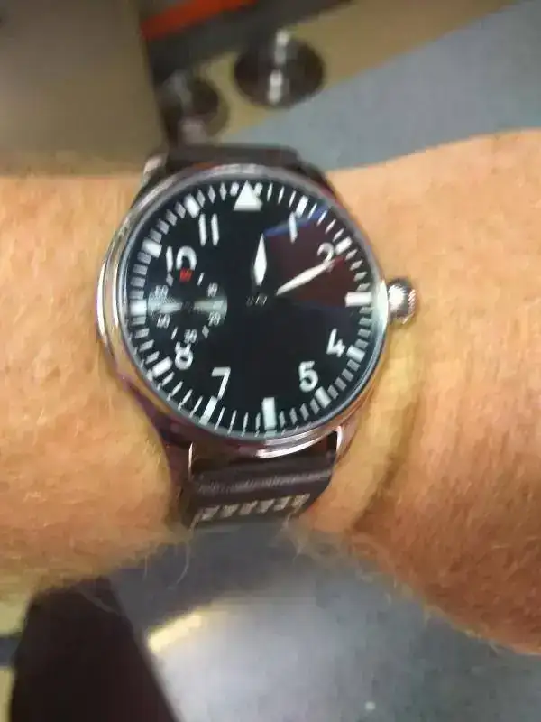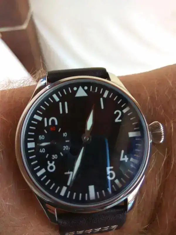 Me he quedado gratente sorprendido por la calidad general de la pieza y de la maquinaria ( Seagull 6497 tipo Unitas de cuerda) me parece que es una buena compra. En unos días que le estoy controlando me está dando unastreinta y dos horas de cuerda...y puede que más pero no le he dejado pararse...bien de precisión, unos diez segundos de adelanto diario (un minuto a los seis/siete días controlado con el móvil), pero casi lo prefiero así. La correa sin ser mala no me gusta al estrecharse, manías que tiene uno, las manillas son luminiscentes y sin ser excesivamente luminosas se ven bastante bien.