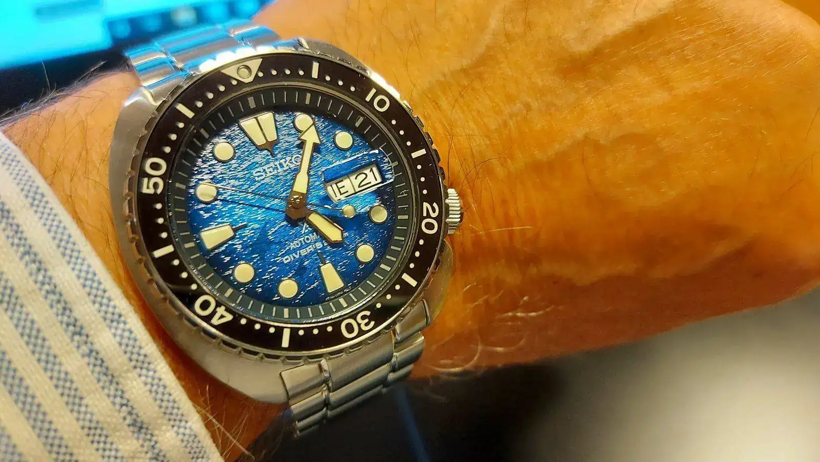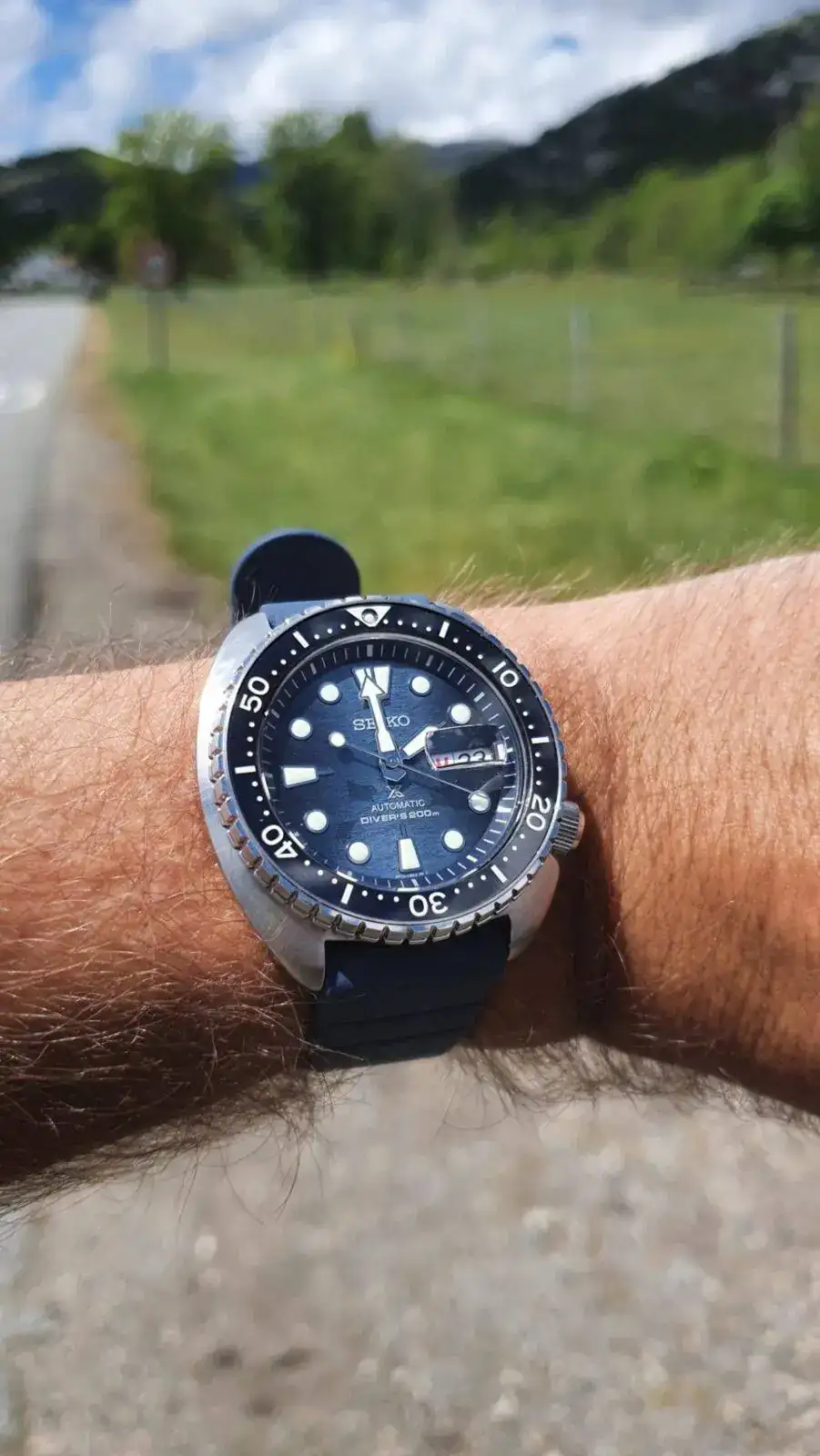 Muy bonito con correa de caucho también.Esa esfera, sobre todo con luz natural, es preciosa. Es difícil reflejarlo en fotografías.
