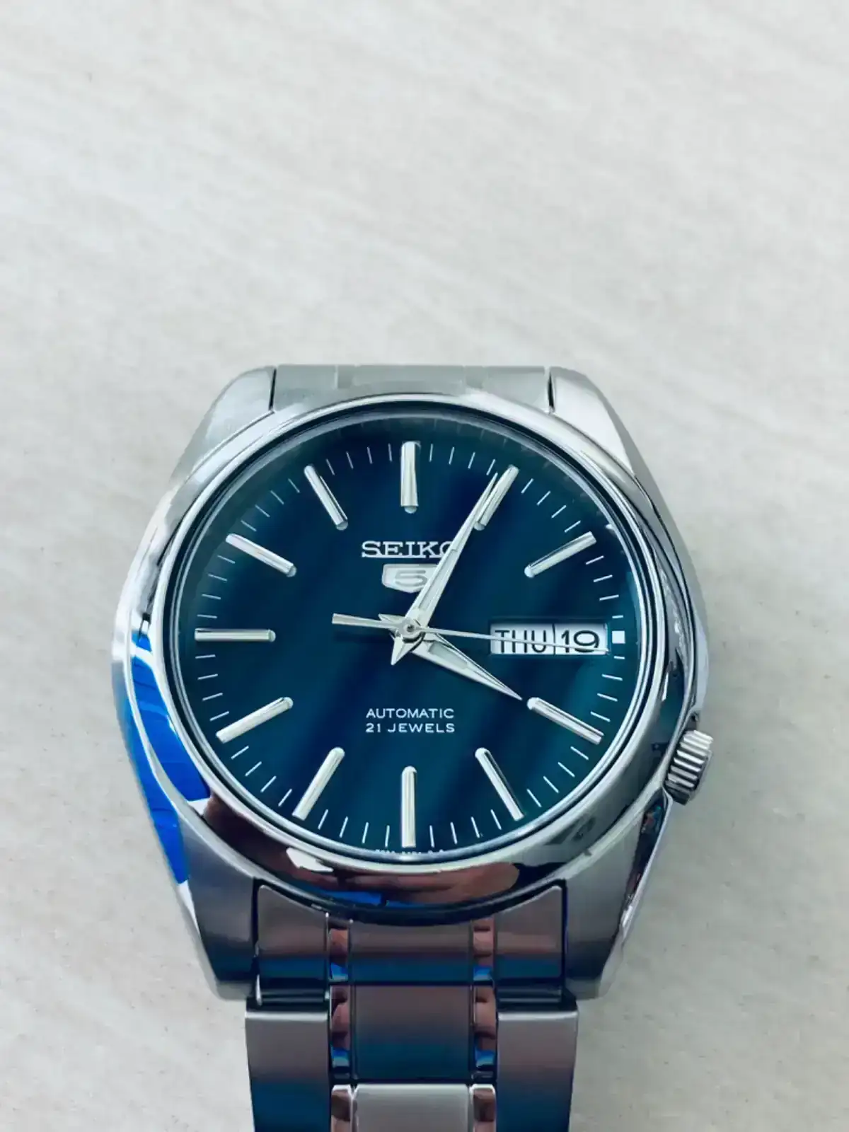 Gracias por mostrar muy bonito y lo mejor automático.Hola Forer@s, no me he podido resistir y he comprado este precioso Seiko 5 . El dial de color azul oscuro le da un aura especial, las agujas también tienen su belleza y el tamaño del reloj es el ideal para mi gusto.