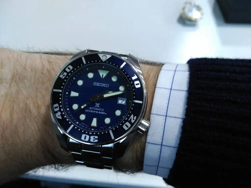 Hace unos días escribí mi primer mensaje en el foro general con mis dudas sobre la compra de mi primer reloj mecánico, y al final, después de leer un montón de hilos de este foro y el de divers, así como tras la preceptiva "audiencia" con mi MDD para el ajuste presupuestario, os presento mi nueva adquisición, un precioso SEIKO SUMO azul que me acaba de llegar ahora mismo...