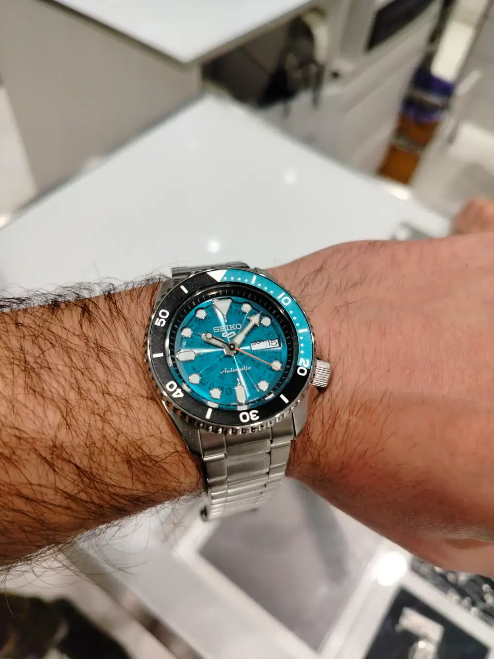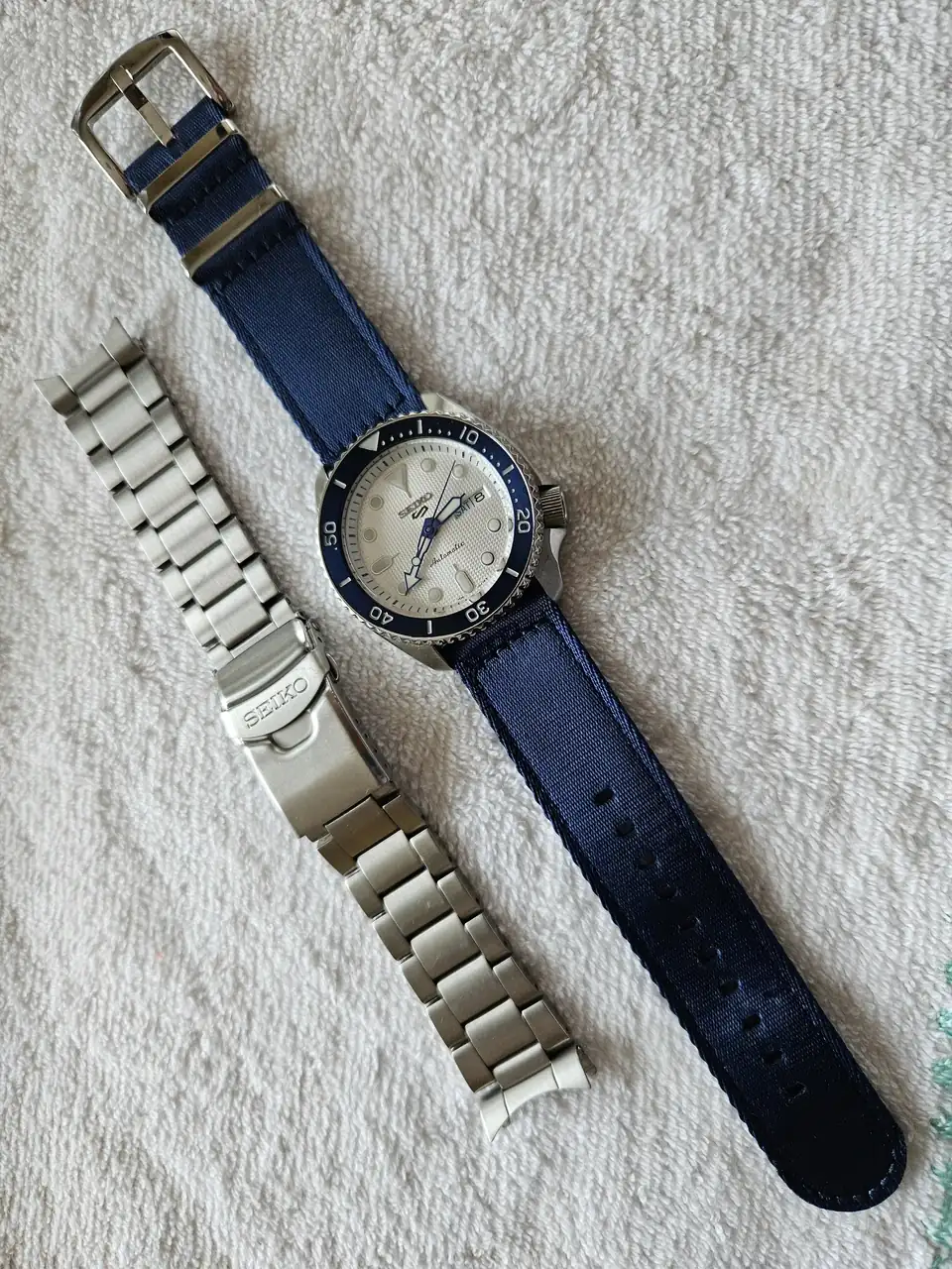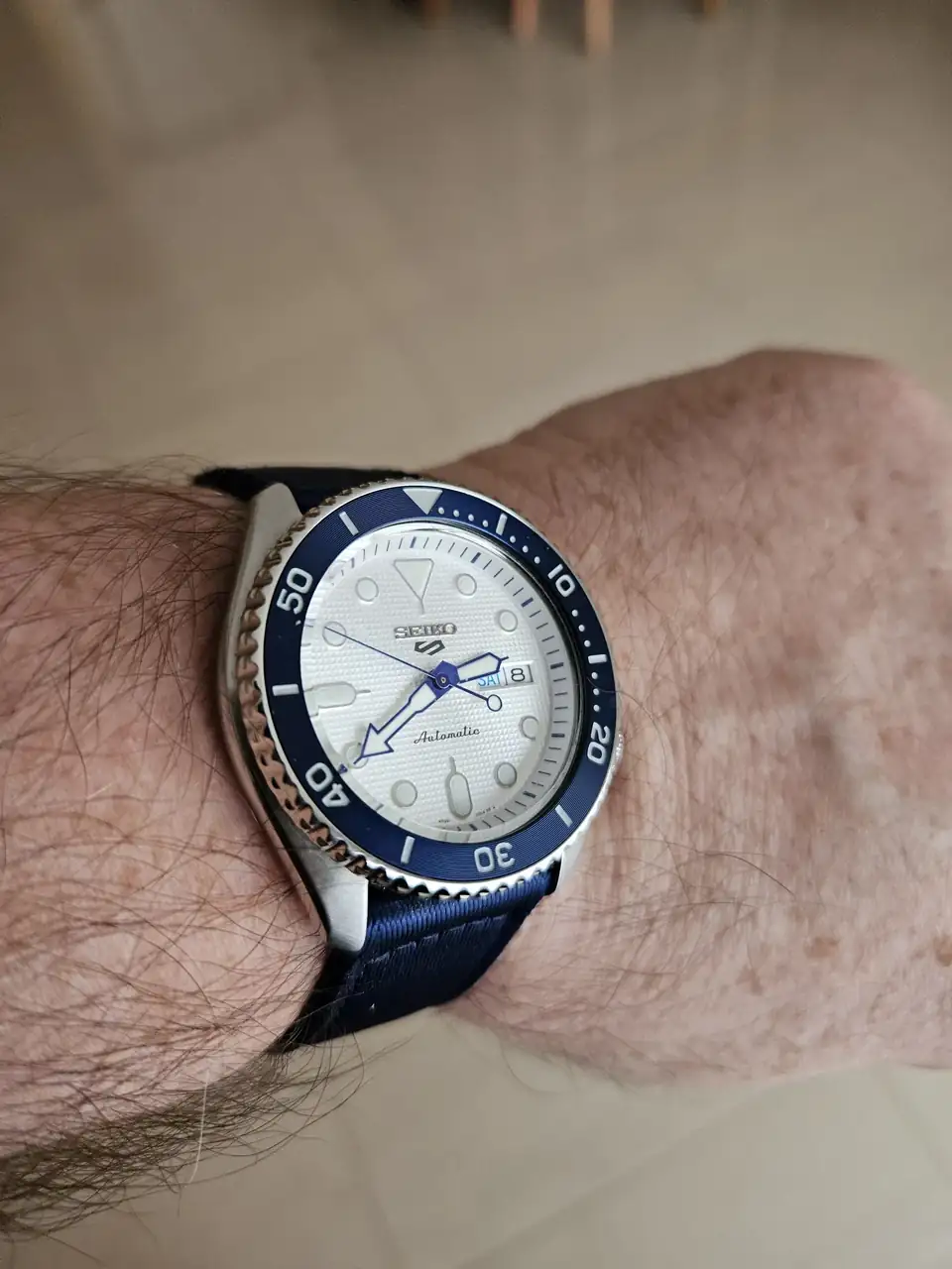Espectacular ese azul y blanco. Me alegro de que el hilo haya servido para que el tuyo vuelva a salir a pasearPrimero de todo, enhorabuena por el regalo... ver tu reloj me ha hecho querer ponerme el mío, pero cambiándole el brazalete, ya que no me lo sentía bien la última vez que me lo puse. Con la correa textil que le compré, la cosa es distinta (lástima que no sea de 20, y sea de 22, sino creo que saldría bastante más)
