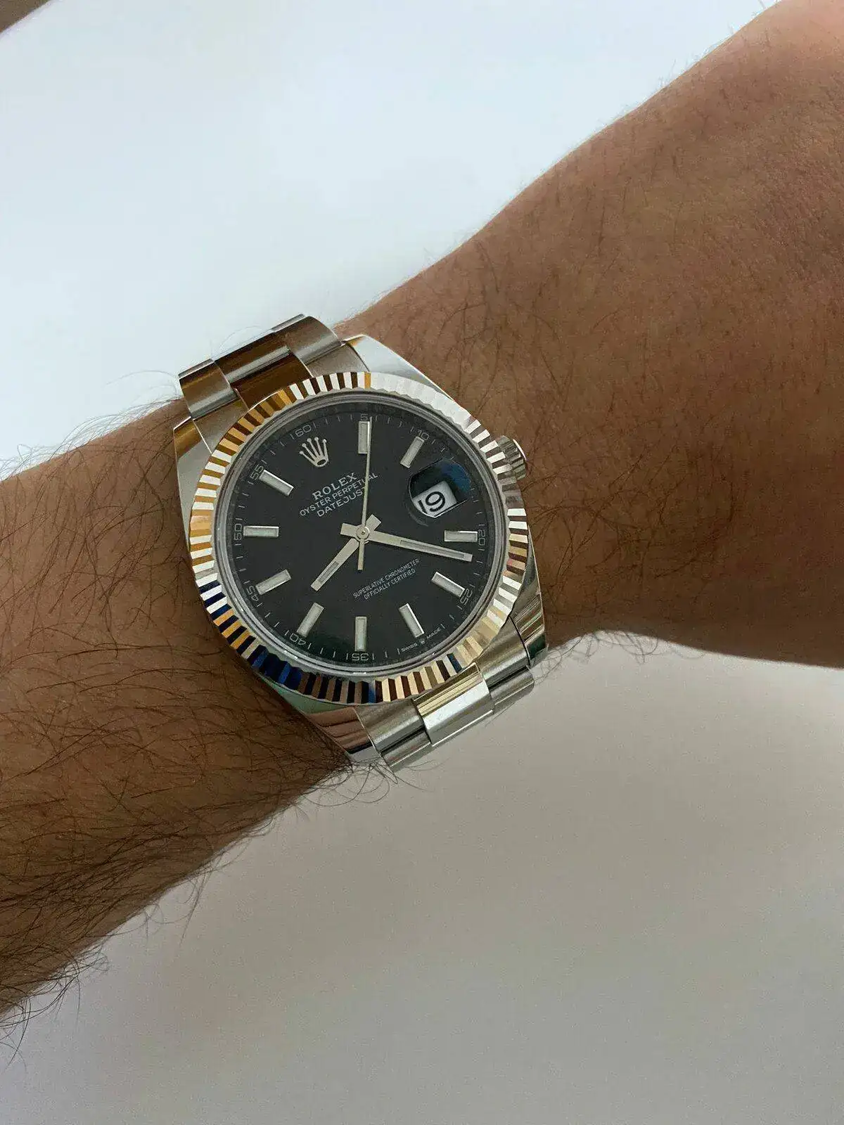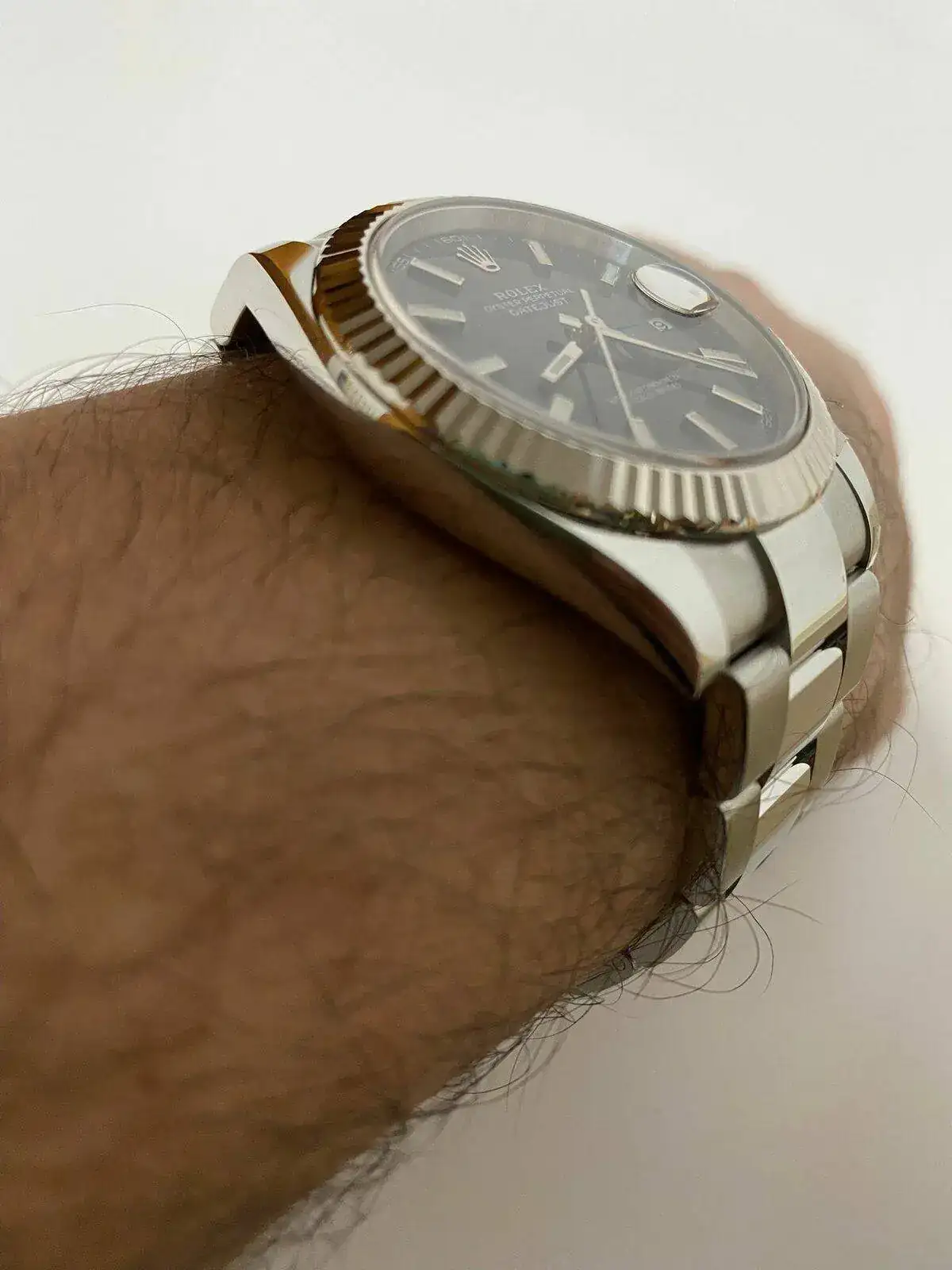 En verano me decante por el sub no date, creo que no hace falta plasmar los motivos de aquella decisión, me tiré a la piscina de las listas de espera, no tenia prisa, pero si ganas de tenerlo, nada que no hayais experimentado. Pues bien el tiempo fue pasando hasta que en octubre en una cena con unos antiguos amigos, alguno de ellos amantes de los relojes, aparecieron 2 de ellos 1 con un sub date 41 y otro con un dj36 mixto, estriado jubile esfera negra y algo hizo clic, evidentemente les pedí ponermelos y el dj me quedaba para mi gustó muy pequeño pero el reloj me encanto, tenía algo que no sabría describir que me enamoro, era el primer dj que veía en persona y pude manipular, sub tengo un compañero de trabajo que lleva uno a diario y lo tengo más a mano. Durante esa semana le estuve dando vueltas, en mi colección encajaría mejor un reloj de vestir o uno de estética militar-pilot, son los 2 que necesito para tener una colección con un poquito de todo, diver ya tienes...