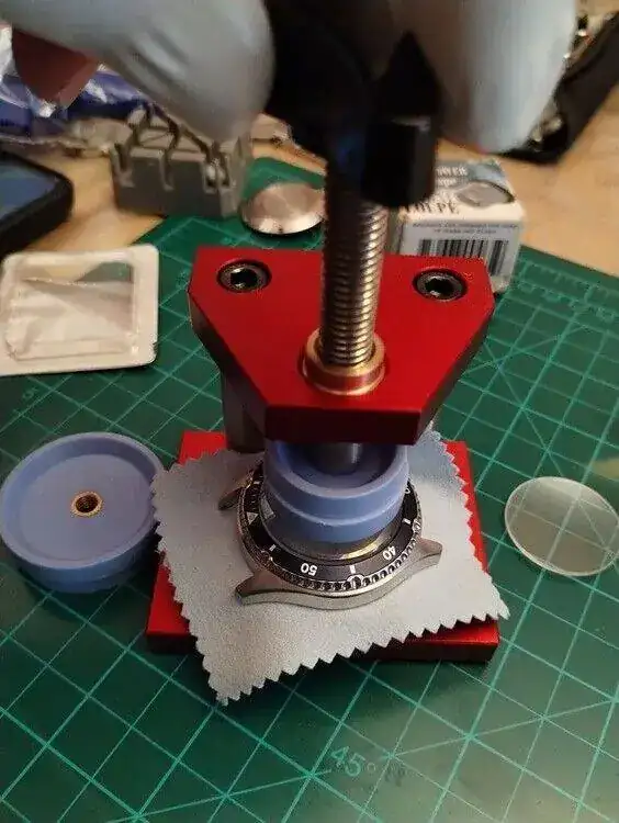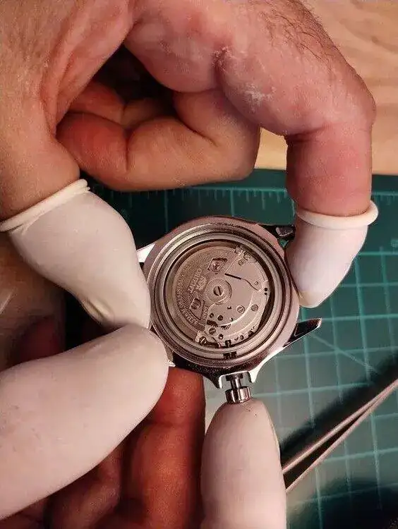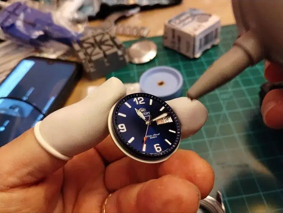 Antes de ponerlo, y una vez que ya hemos quitado la tapa trasera, el calibre y el dial; una última comprobación de que el tamaño es el correcto.