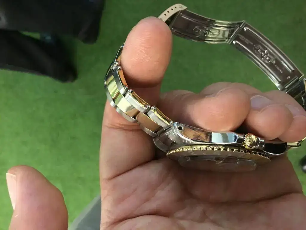 Un reloj que ya mostré el año pasado. Además del bello nipple dial, el brazalete a remaches con caras laterales en oro es muy poco usual: