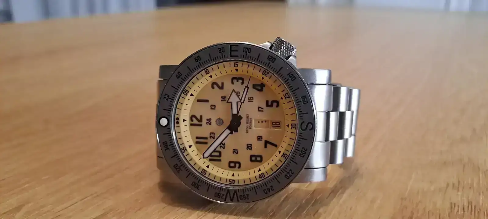 Aquí Helm se sale un poco del diver puro y hace algo distinto. Estética explorador, instrumental, con ese aire de reloj de expedición que no pretende ser bonito, sino útil. Y lo consigue.
