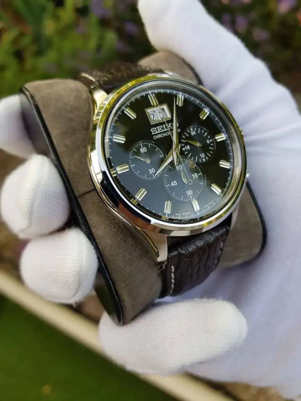 Seikos: Ambos comprados en este foro gracias al apartado de compraventa y a los anteriores dueños los cuales han sido muy cuidadosos con el envio y unas grandes personas. De los dos me he quedado con el crono, el cual me parece una autentica barbaridad de bonito y he vendido el otro. La razón? Lo veréis al final con la ultima adquisición, la cual me encanta pero eso no quita que tenga pena del vendido. No he pedido permiso pero robo las fotos de sus anuncios ya que me ha sido imposible reflejarlos mejor. Disculpas de antemano.