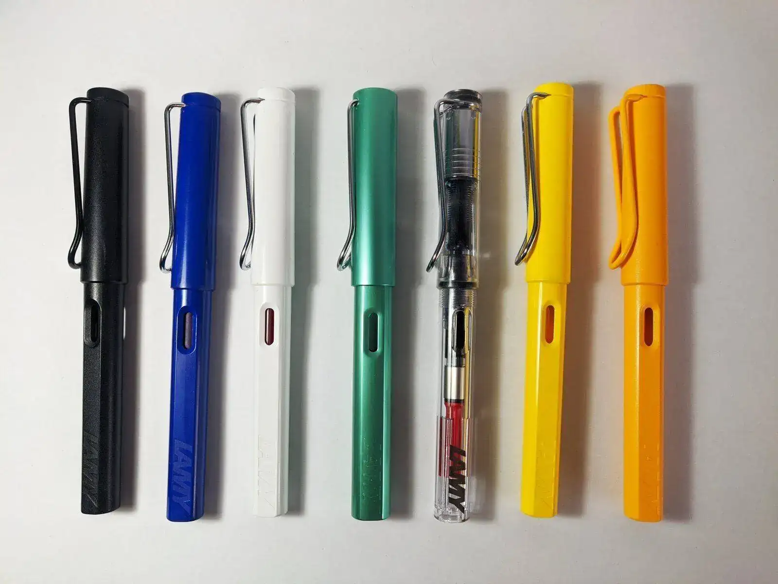 Me gustaría compartir con vosotros a mis pequeñas las cuales voy alternando cada poco tiempo comportándose de maravilla en el día a día. Aún no me he atrevido a dar el salto a otros modelos de estilográficas pero es que son tan coloridas y de aspecto tan actual que no veo el momento de empuñar otra. Las uso con plumines F, M y estilográfico 1.5 y con tintas de varios colores de Lamy aunque el azul borrable es el principal, no obstante últimamente le he cogido el gusto para anotaciones a la tinta mango de Lamy, espero que os guste tanto como disfruto viendo yo las vuestras. Nos leemos!