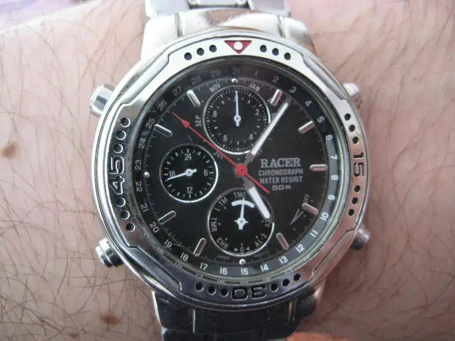 Cronógrafo Racer de cuarzo, un regalo de mi familia al que tengo mucho cariño y que uso bastante.