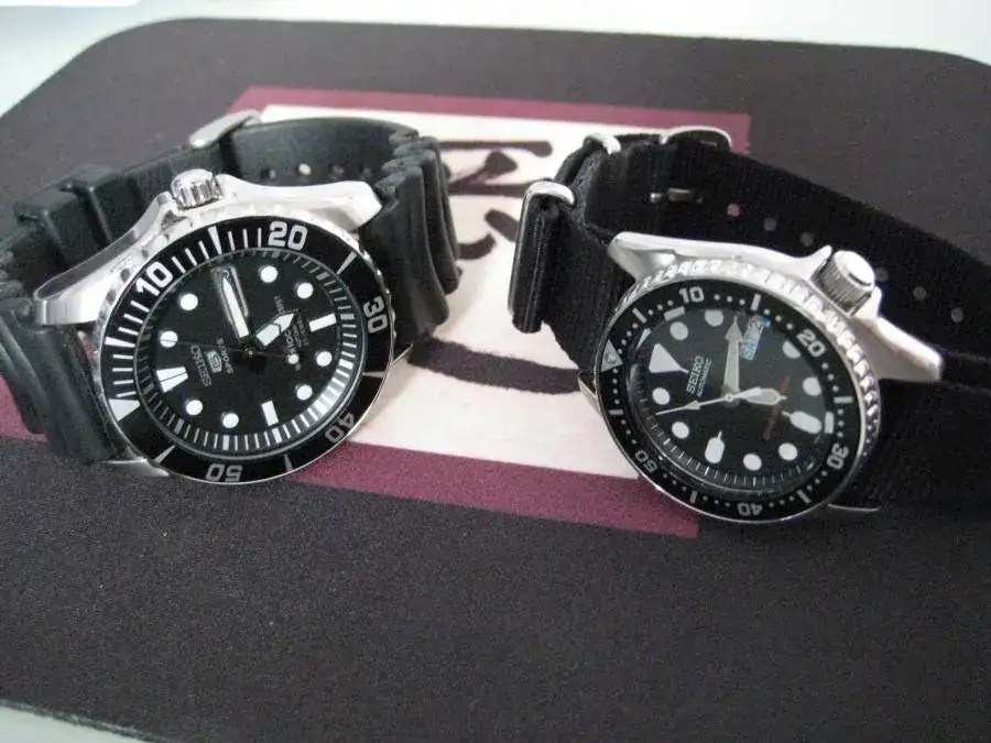 Y finalmente la pareja de divers Seiko. Mi Seiko SNZF17J, un made in Japan que de mayor quiere ser un Sumo. Y el Seiko SKX013 que he comprado a mi mujer, es igual que el 007 pero de menor tamaño y está encantada con él.