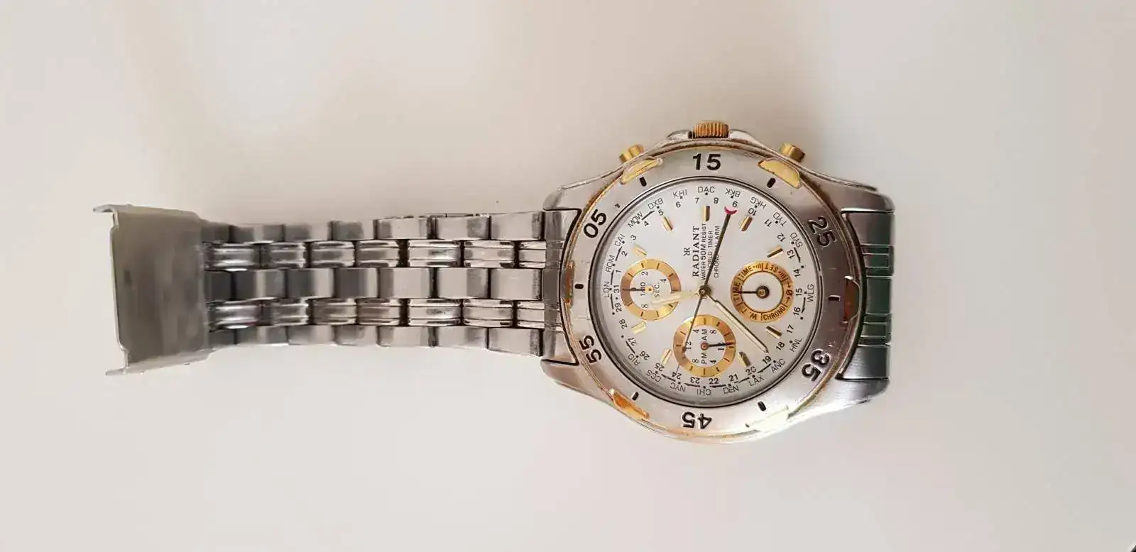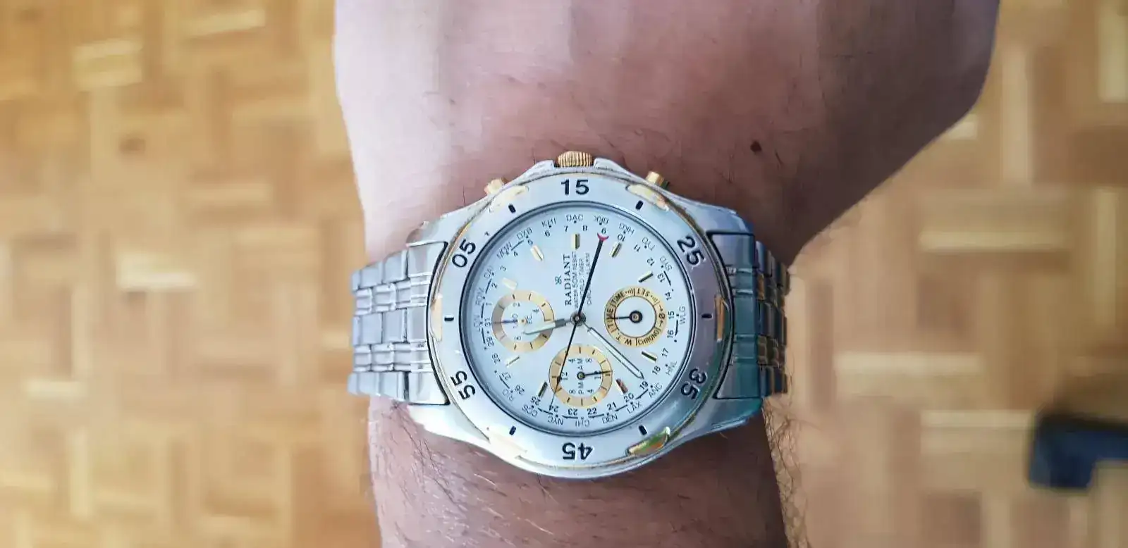 Un RADIANT que me regalaron mis padres. Recién revisado y puesto a punto por Herminio (ese hombre merece un hilo aparte. Buenísimo!). No es mi mejor reloj, pero es el único que estoy seguro me acompañará toda la vida!!