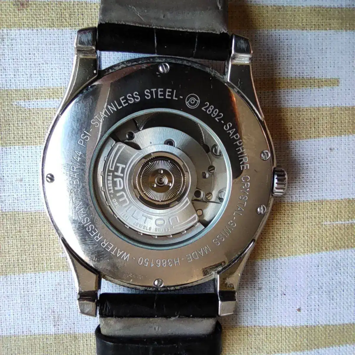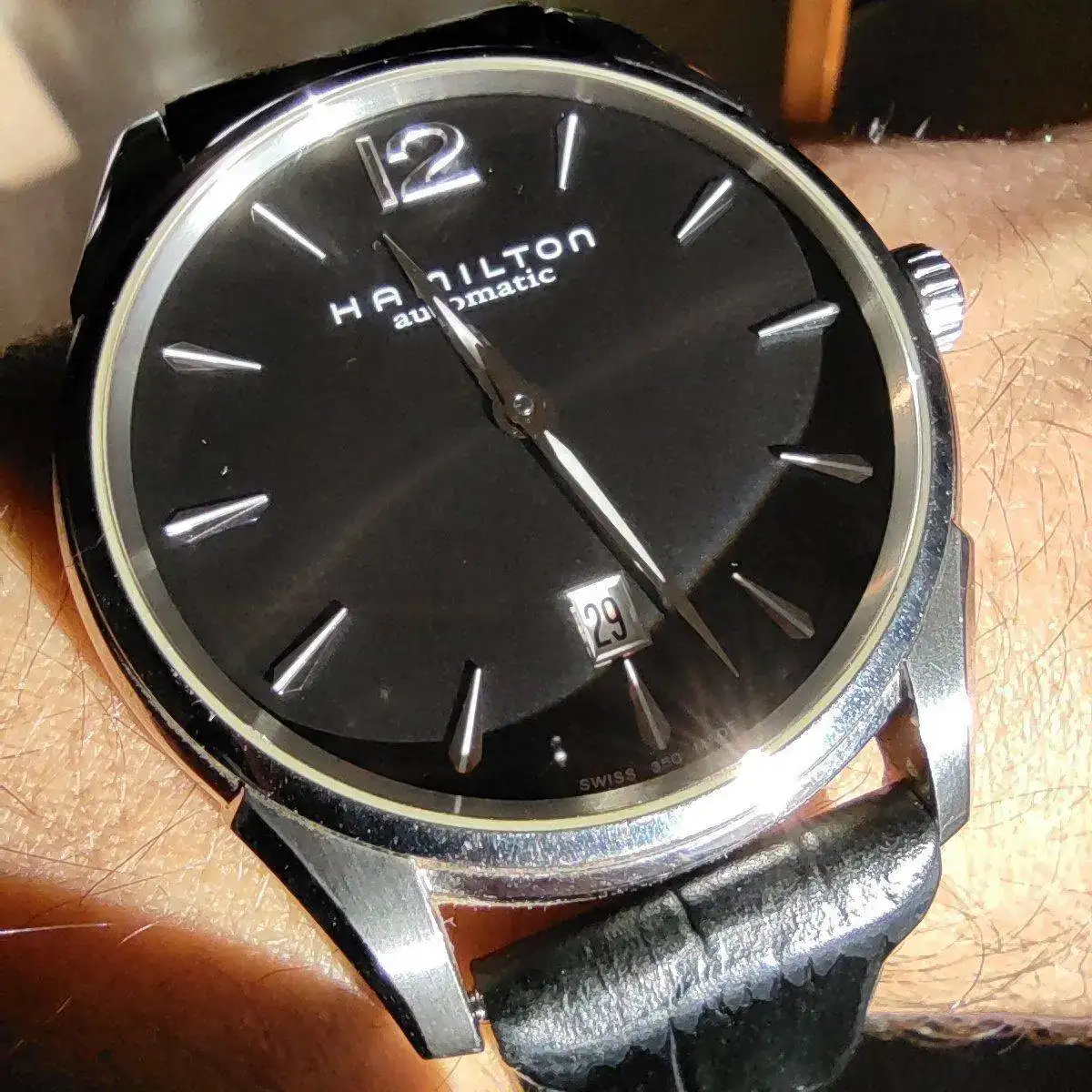 Al parecer es un Es un Hamilton Jazzmaster, referencia H386150. Aquí dejo unas fotos de mi nuevo compañero. Espero sus comentarios sobre él, características, gama, etc. así voy aprendiendo de los expertos. Un saludo!