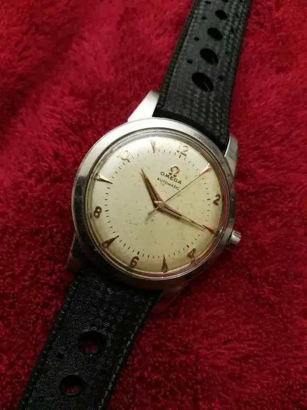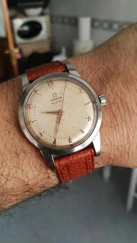 . Como menciono en el título del hilo es un "bumper", un martillito al que es una gozada sentirlo en la muñeca. Con el calibre 351 de Omega y por su número de serie lo daté en el año 1951, creo que este es el año en que se dejó de producir este movimiento, y solo empezó a producirse en el año '49, o sea solo dos añitos de vida tuvo este calibre, pero espero que me podáis confirmar ese dato
