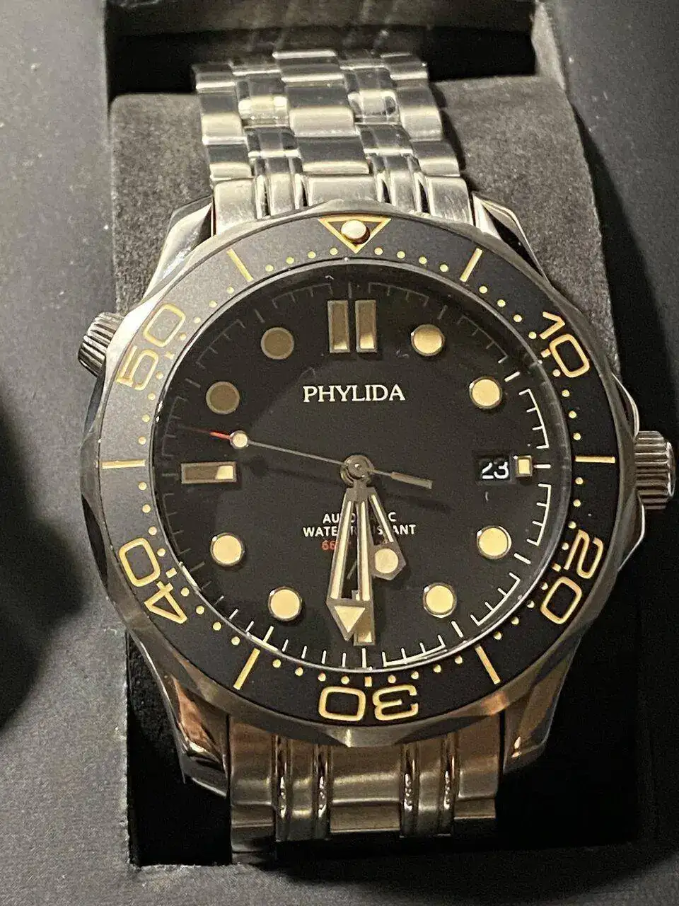 Pues hoy he quedado para comer con un amigo, yo empezaba vacaciones y él justo las acababa. Y resulta que el muy cachondo me ha traído de regalo un chinorris, un Pagani Design, que se convierte en el primero de esta categoría en mi colección. Tengo un Seagull 1963, pero lo considero otro nivel. La cuestión es que no soy de homenajes/fusiladas a relojes más que conocidos, pero como se suele decir "a caballo regalao...", así que os paso unas fotitos del modelo en cuestión, a ver qué opinión os merece.