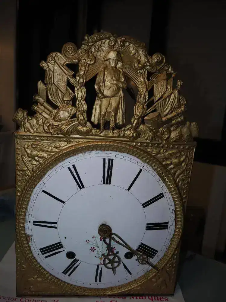 Me hizo mucha gracia que en el frontal decorado aparece el mismo Napoleón Bonaparte (sin lugar a dudas). Los detalles que me hacen pensar en su posible fecha de fabricación son, dentro de mi casi total ignorancia: