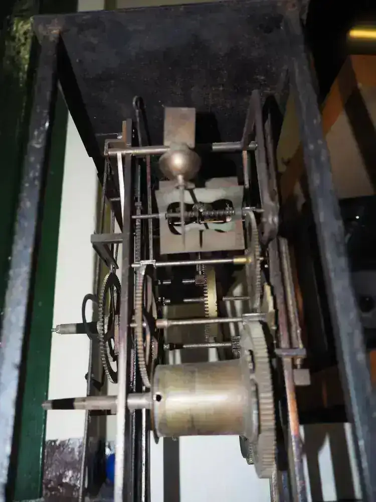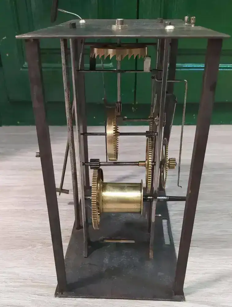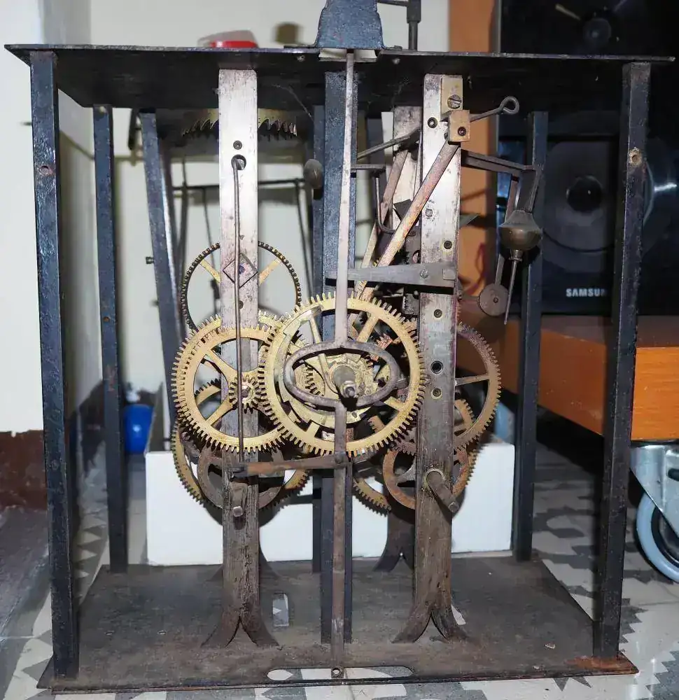 Aprovecho para "presentaros" mi otro Catalino... este, como ya comenté, lo compré como material de desguace (para "aprovechar" piezas, según el vendedor), a un precio muy económico... Lo compré por si no podía reparar el engranaje roto que, gracias a vosotros, ha sido reparado. Sólo lo que veis en las fotos, la caja, sin disco ni carátula decorada y, obviamente, sin péndulo, sin pesas y sin llave. Pero, para mi sorpresa, he probado que, aparentemente, es funcional... si giro el tambor de las horas (que, por cierto, tiene una reparación casi más chapucera que la mía con el engranaje) con la mano imitando la fuerza que le daría una pesa la catalina se pone a girar... (este conserva el hilo de la suspensión que tuvo en su última época de funcionamiento)... Es muy parecido al movimiento con el que abrí el hilo con algunas diferencias (este no tiene el mecanismo para tocar las medias separado, por ejemplo). La idea es, más adelante, en un segundo proyecto, hacerle un repaso, limpieza e intentar ponerlo con un frontal de metacrilato que permita ver el mecanismo mientras funciona (he visto ejemplos en la red)... Claro, faltará comprar agujas, péndulo, pesas y campana... pero poco a poco y tiempo al tiempo...