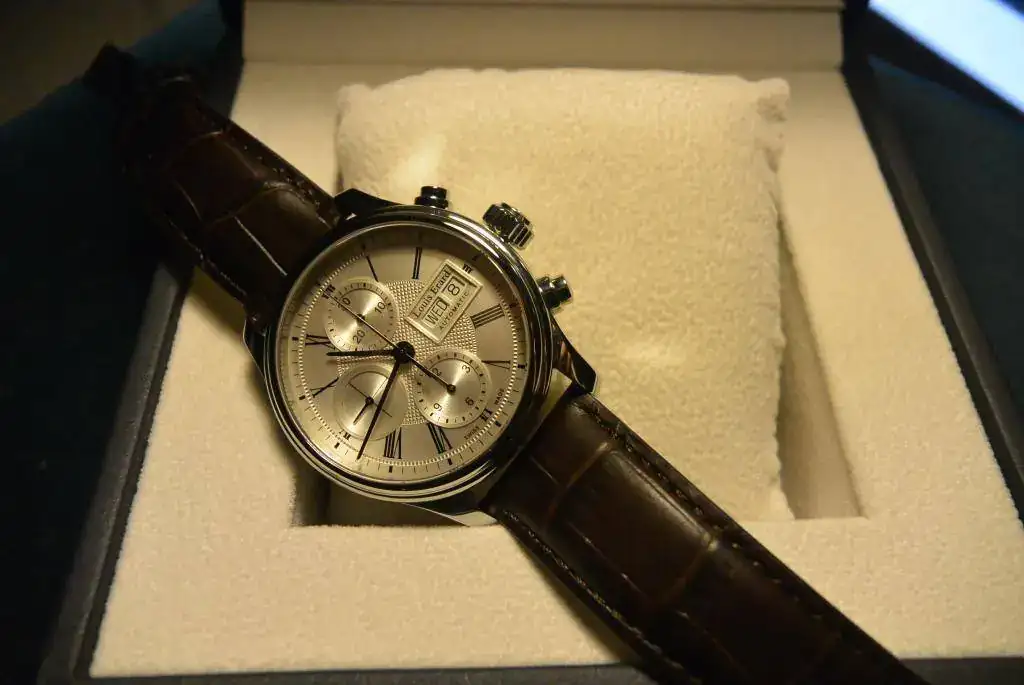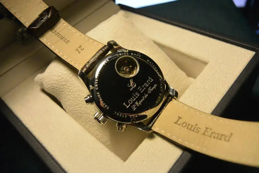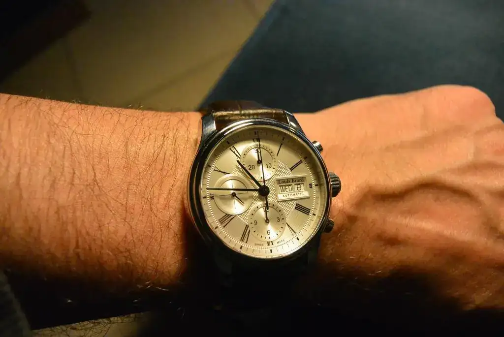 Tenia muchas ganas de tener un cronógrafo automático por primera vez...y tras una oportunidad que me ha salido, estreno totalmente nuevo esta elegante pieza de la marca Louis Erard, una marca que no se prodiga mucho por el foro (se dice que pierden valor a la hora de venderlas) pero que hace modelos preciosos.