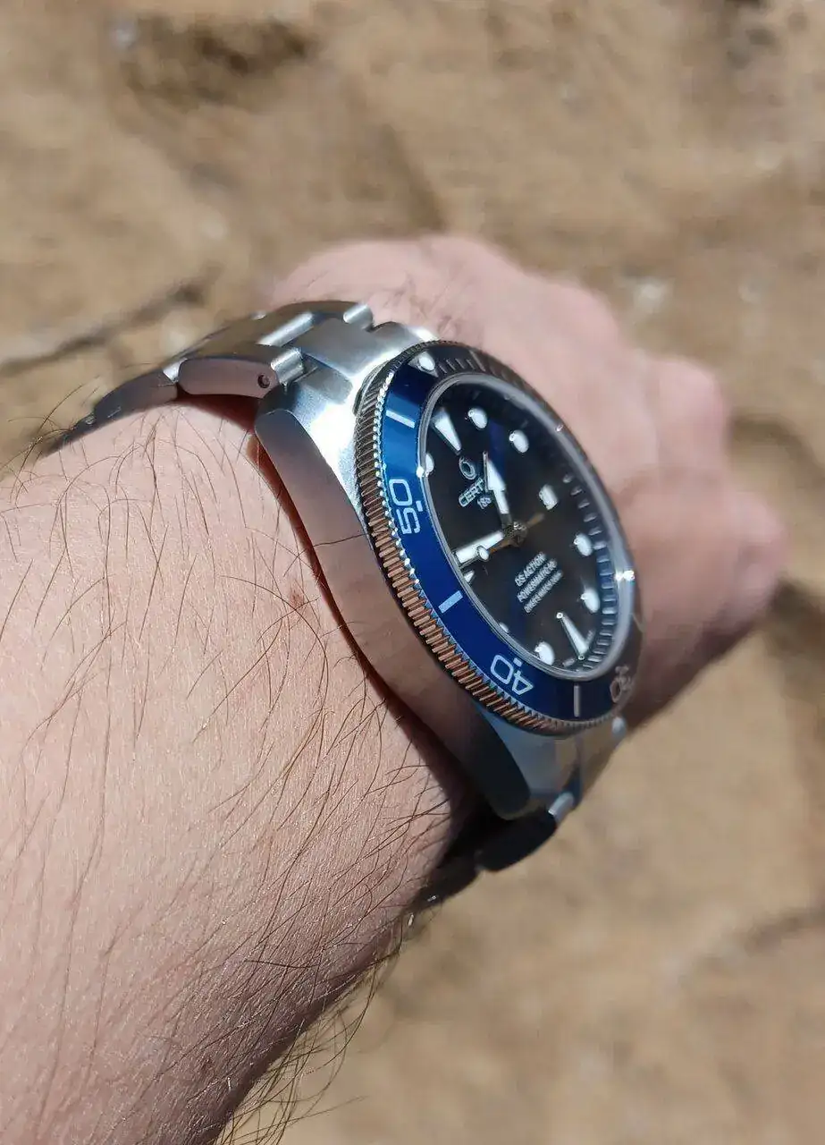Estéticamente es bonito y tiene una buena manufactura, el tamaño contenido, el dentado fino del bisel... le dan un punto elegante. No es 'de vestir' pero a pesar de ser un reloj de estilo deportivo lo veo bien para toda ocasión. El bisel de aluminio, aunque es menos resistente a los arañazos, visualmente me gusta más.